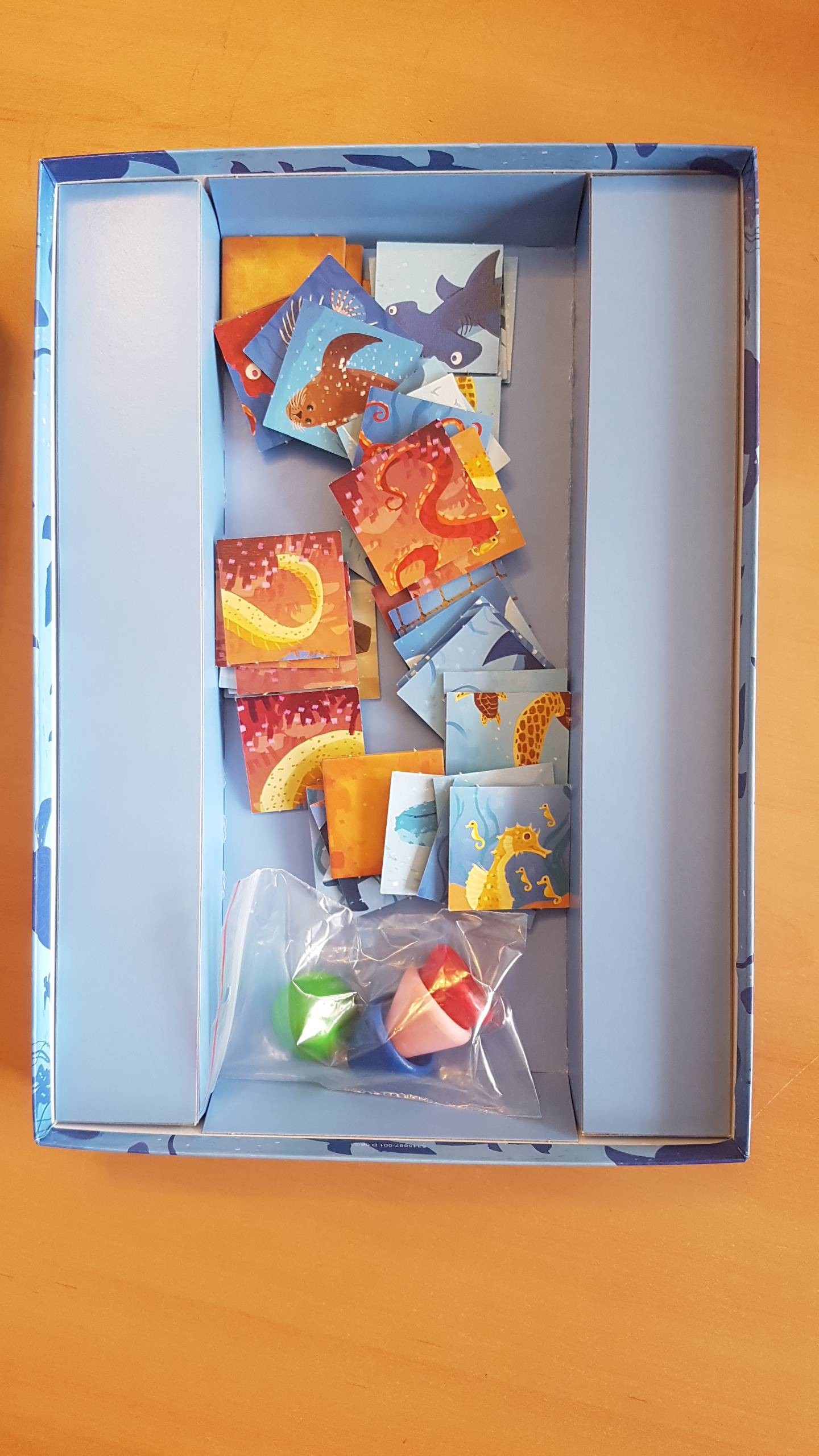 Der Spielplan muss von unten nach oben belegt werden! Wer ein passendes Tierkärtchen legen oder vervollständigen kann, darf mit seinem Hütchen ziehen – und wer am Ende auf dem Strandpfad vorne liegt, gewinnt das Spiel!