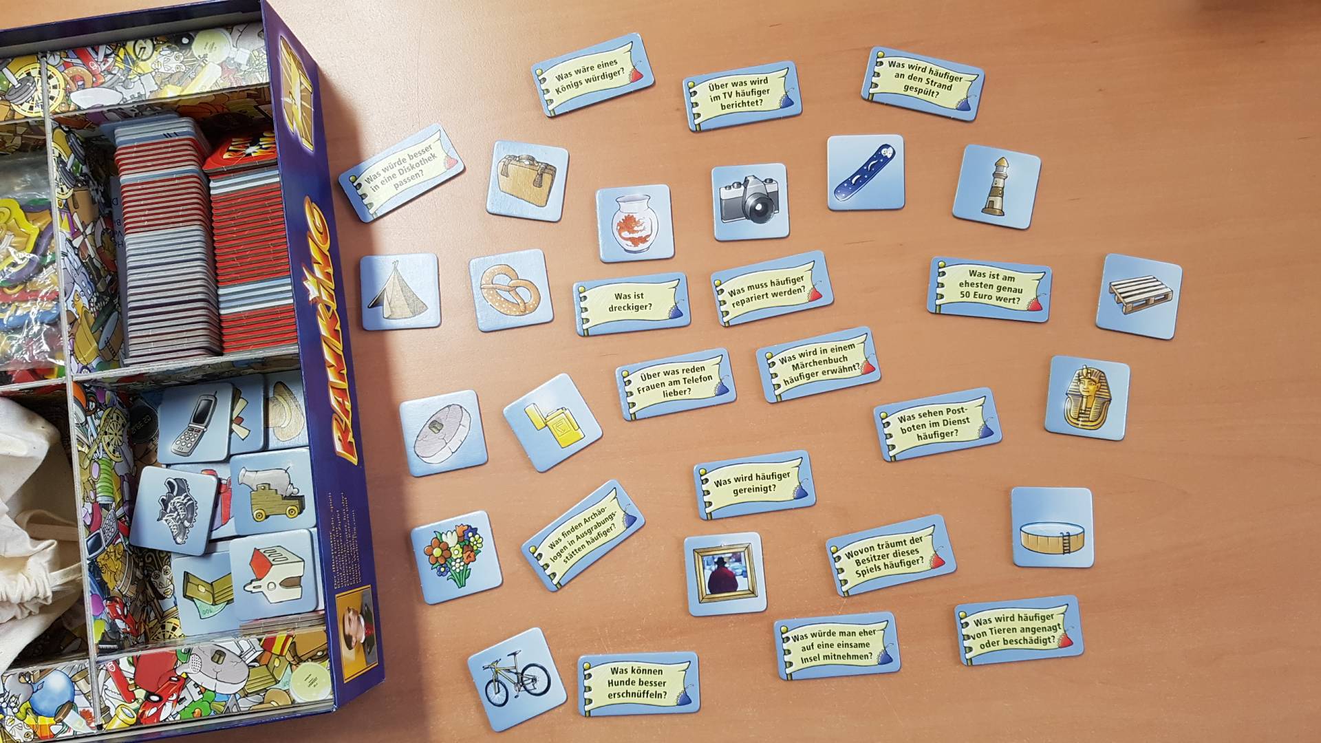 Diese und ähnlich weltbewegende Fragen könnten die Spieler bei Ranking beantworten. Dazu bringen alle Spieler die ausliegenden Gegenstände gemeinsam in eine Rangfolge. Jeder Spieler versucht dabei klammheimlich oder manchmal auch ganz dreist, seinen eigenen Gegenstand nach oben an die Spitze zu befördern.