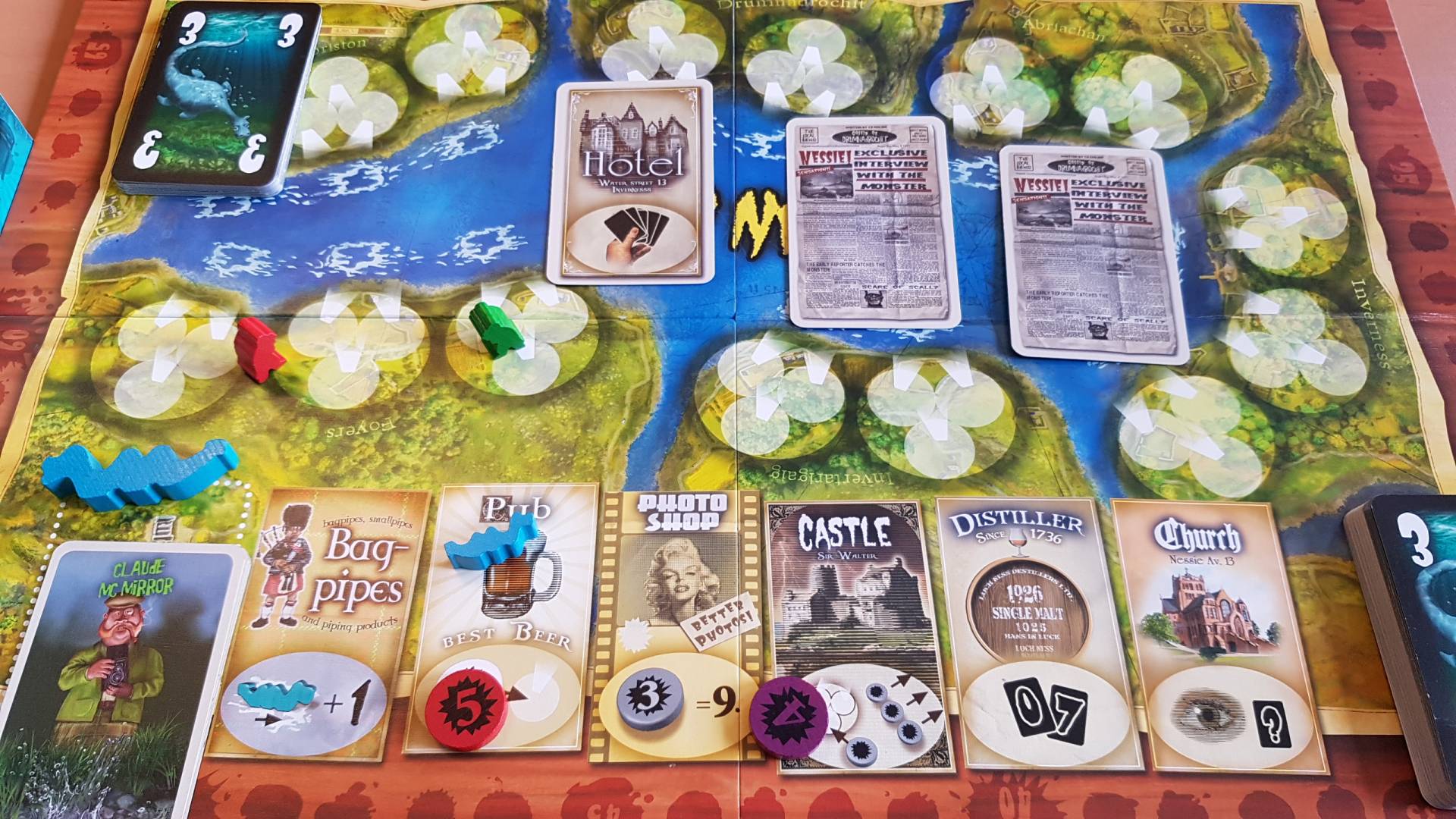 In Loch Ness versucht Ihr eure Kameras dort zu platzieren, wo Nessie als Nächstes auftaucht. Doch die Mitspieler haben auch noch ein Kärtchen mit zu spielen. Ein bisschen Risikobereitschaft und ein bisschen Bluffen gehören genau so dazu wie etwas Glück und Intuition.