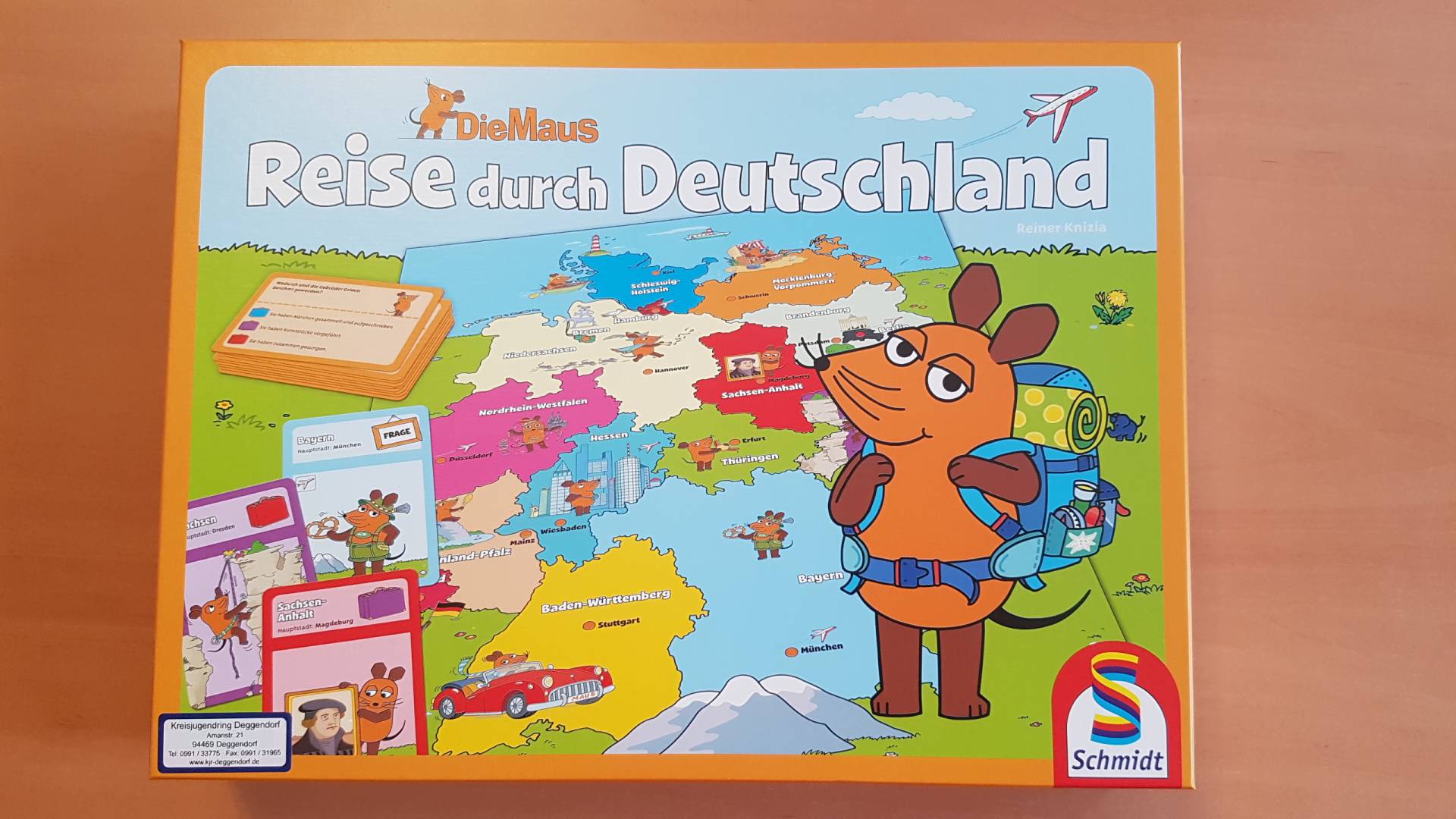 Die Maus hat ihren Rucksack für eine abenteuerliche Reise durch Deutschland gepackt! Es gibt viel Spannendes zu entdecken, denn jedes Bundesland hat seine eigenen Geschichten. Die Spieler helfen der Maus und reisen mit: Mit jedem Spielzug tüftelt man an einer neuen Route quer durch Deutschland. Dabei erfahren die Spieler mit den kniffeligen Fragen des lustigen Quizspiels viel Spannendes über die unterschiedlichen Regionen.