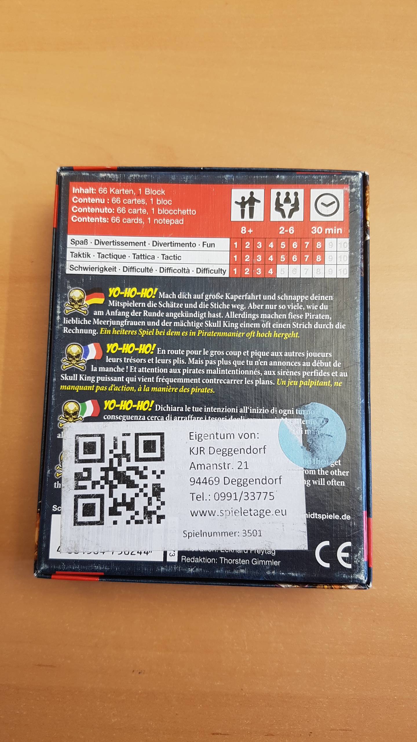 Yo-Ho-Ho! Die Spieler machen sich auf zur großen Kaperfahrt und schnappen den Mitspielern die Schätze und die Stiche weg. Aber nur so viele, wie sie am Anfang der Runde angekündigt haben. Allerdings machen fiese Piraten, liebliche Meerjungfrauen und der mächtige Skull King einem oft einen Strich durch die Rechnung. Ein heiteres Spiel, bei dem es in Piratenmanier oft hoch hergeht.