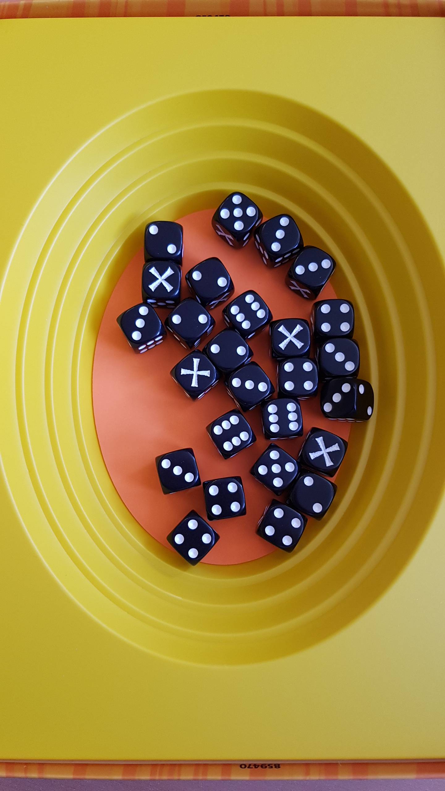 Unter euch befinden sich treffsichere Würfelwerfer? Na dann los im Würfelwettstreit! Kurze Regeln und sofortiges Losspielen garantiert! Reihum werfen die Spieler ihre Würfel in die Arena, um Treffer zu landen. Wer durch gekonntes Umstoßen passende Augenzahlen erzielt, nimmt diese Würfel zu sich und beendet damit seinen Spielzug. Im Laufe des Wettstreits können Würfel gewonnen oder verloren werden. Wer also zuletzt Würfel übrig hat, gewinnt diesen genauso lustigen wie schadenfrohen Actionspaß!