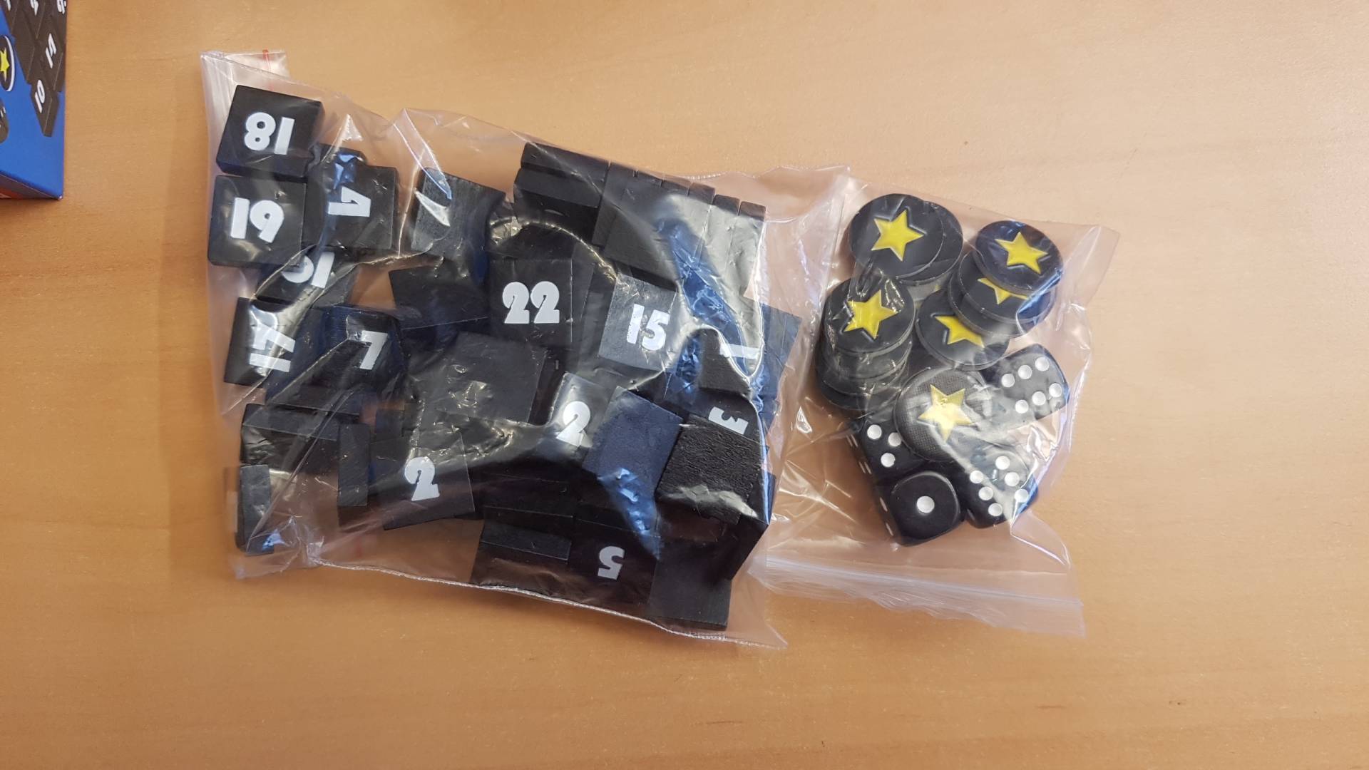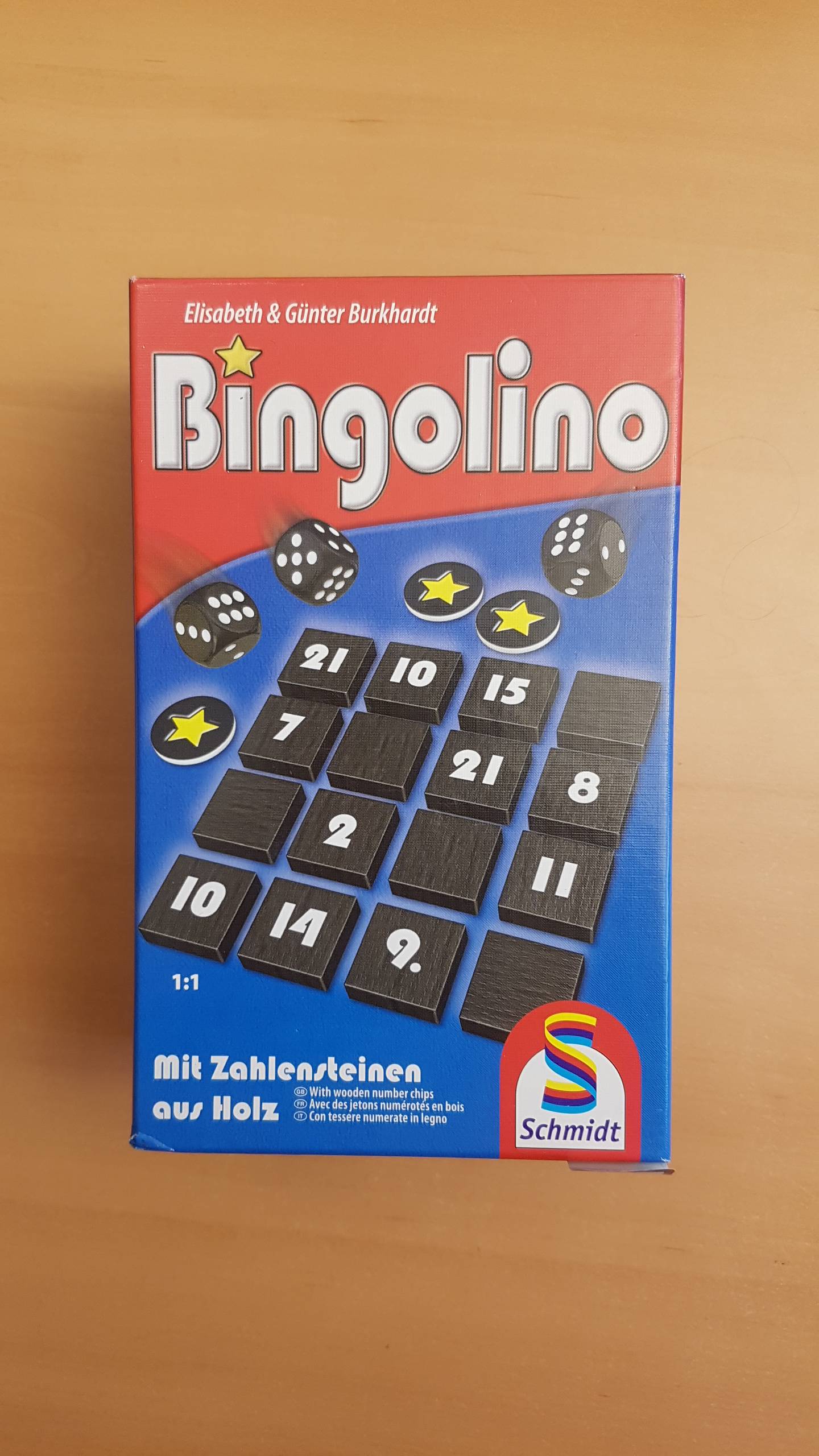 Spannende "Bingo"-Variante, bei der die Spieler durch die Wahl mit wieviel Würfeln sie würfeln, mehr Einfluss darauf haben, welche Zahlen "gezogen" werden. Da alle Spieler jeden Wurf nutzen können, spielen alle Spieler - wie bei "Noch Mal!" - gleichzeitig und keiner muss lange warten.