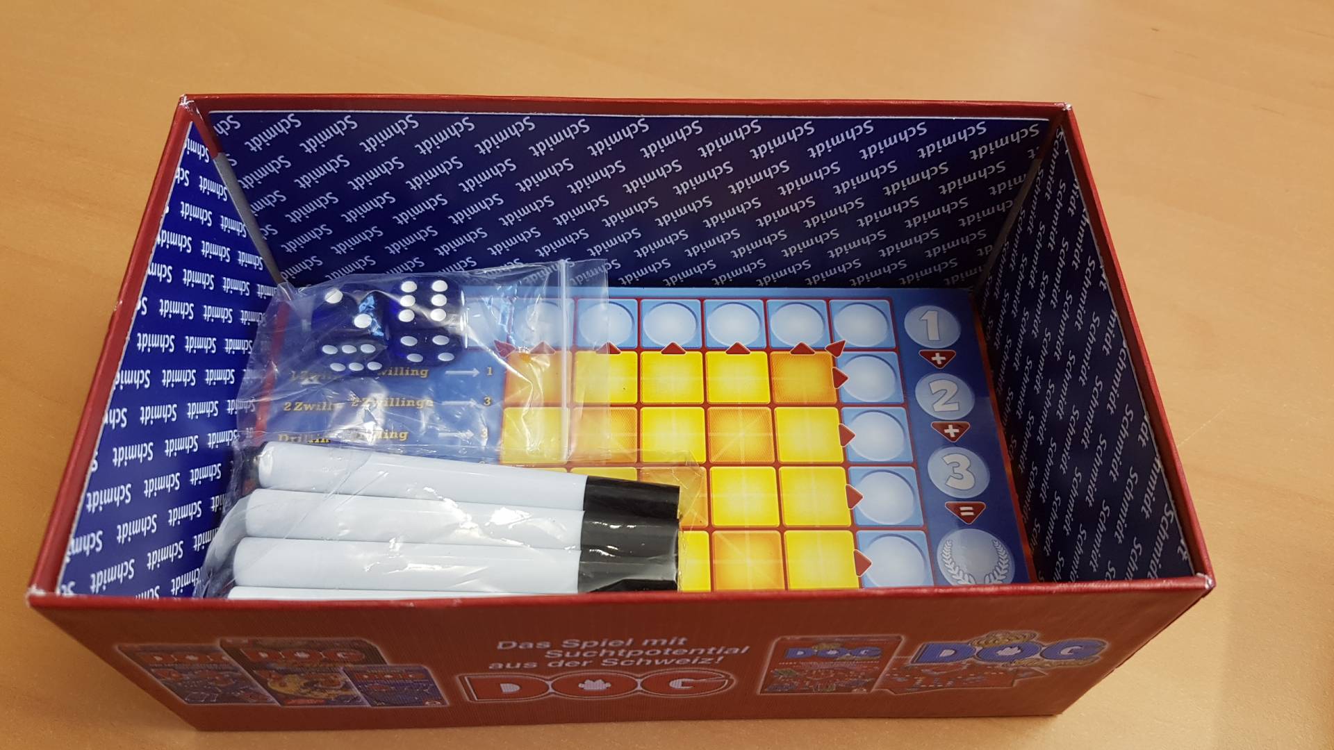 Die Summe der Punkte wird auf der eigenen Tafel eingetragen und der Rest des Spielfelds für die nächste Runde abgewischt. Nach 3 Spielrunden werden die Ergebnisse addiert. Nun darf jeder hoffen, dass seine Zahlen am geschicktesten auf dem Spielfeld verteilt wurden Das ist natürlich dann gelungen, wenn man/frau die meisten Punkte hat...