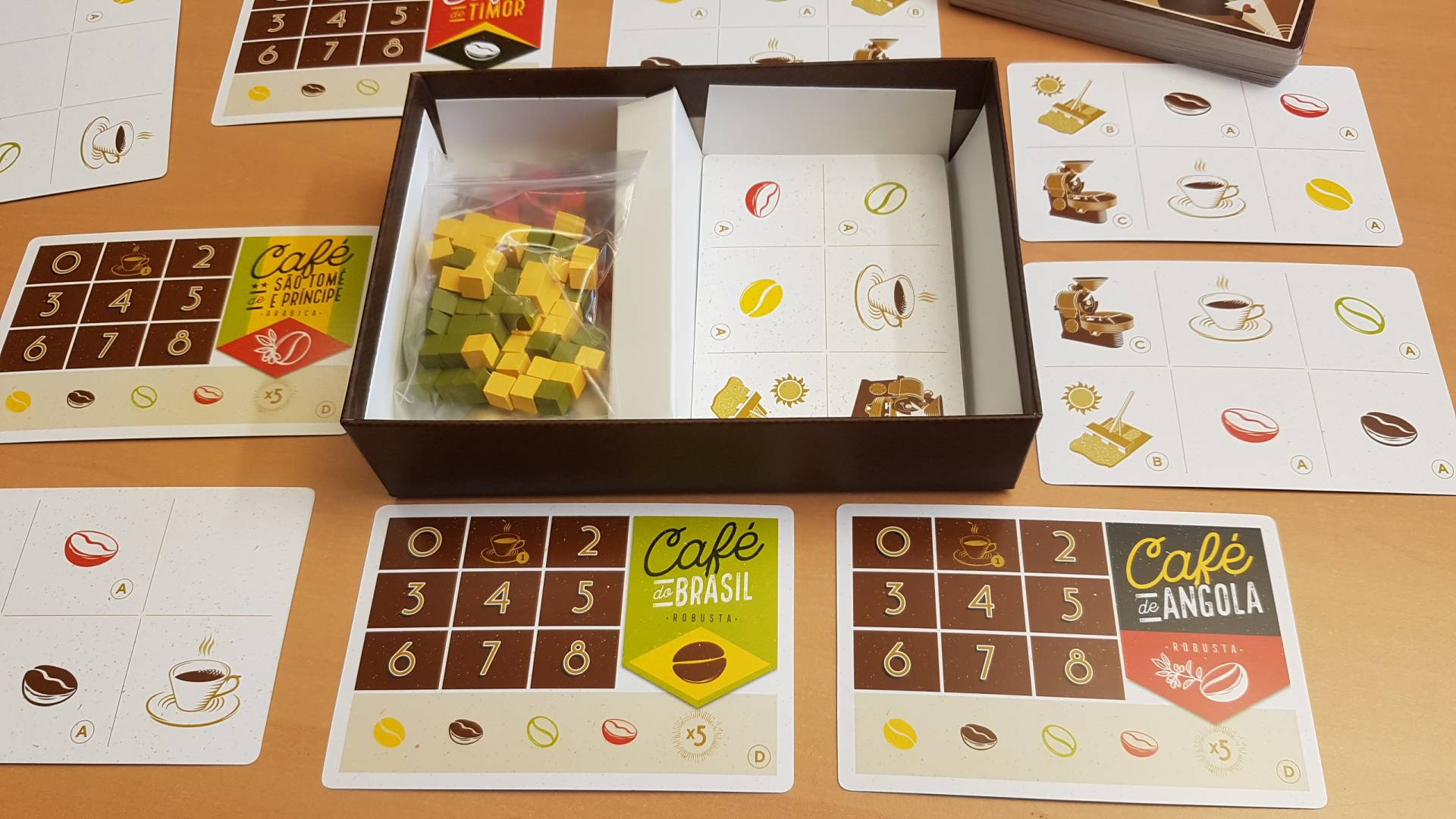 Brasilien war bereits 1800 einer der größten Kaffeeproduzenten der Welt. Die ersten Kaffeesamen gelangten heimlich und auf Befehl des Königs ins Land. Kaffeetrinken gehörte bald zur portugiesischen Kultur dazu. Zu Beginn des 20. Jahrhunderts lieferten Kaffeebohnen aus verschiedenen Anbaugebieten exquisite Mischungen. Dieses kurzweilige Spiel bringt den Prozess vom Anbau der Kaffeebohnensorten über das Trocknen und Rösten bis zur Auslieferung ins exquisite Kaffeehaus oder eigene Lager gekonnt auf den Spieltisch. Jeder Spieler erhält pro Runde eine aus sechs Feldern bestehende Karte. Diese gilt es taktisch klug so in die eigene Auslage einzubauen, dass möglichst viele gleiche Felder aneinander grenzen. Denn dann kommt die Produkion richtig in Fahrt! Da beim Ablegen der neuen Karte aber stets ein Teil der bisherigen Felder abgedeckt wird, ist gutes Planen und Abwägen entscheidend. Wem gelingt es am besten mit seinen Aktionen, die optimale Lieferkette für Kaffee zu schaffen und zu kontrollieren. Ein kleines Spiel, aber mit großem Anspruch und viel Genuss.