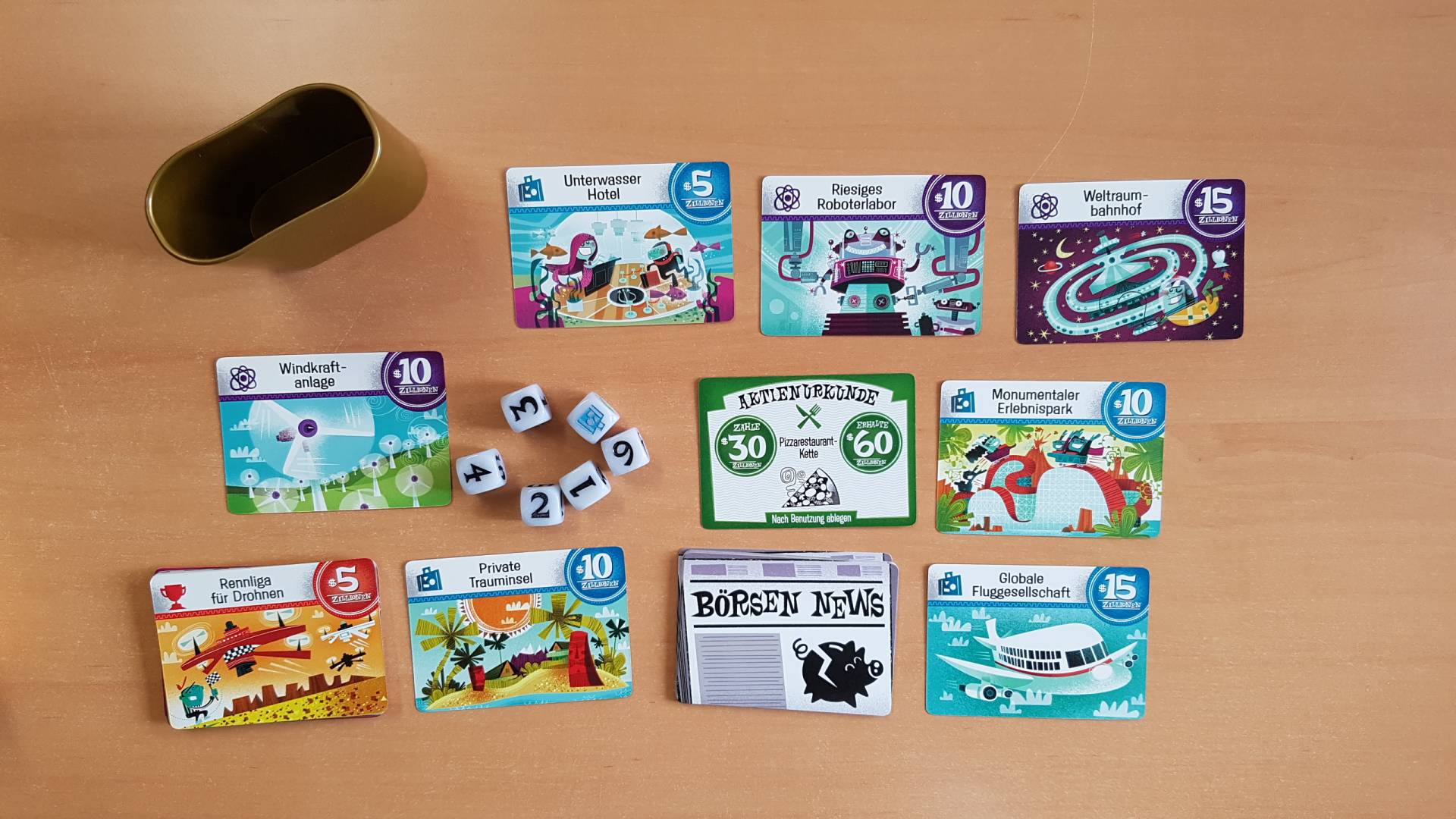 Gewinnbringende Investments tätigen und das persönliche Finanzimperium immer weiter ausbauen ist das Ziel. Es kann eine abgedrehte Achterbahn sein oder doch die erfolgreiche Fußballmannschaft. Jeder Spieler trifft seine eigene Entscheidungen und trägt das Risiko. Dieses Glückspiel bringt großen Spielspaß in jeden Spieleabend und eignet sich perfekt für Kinder ab 8 Jahren.