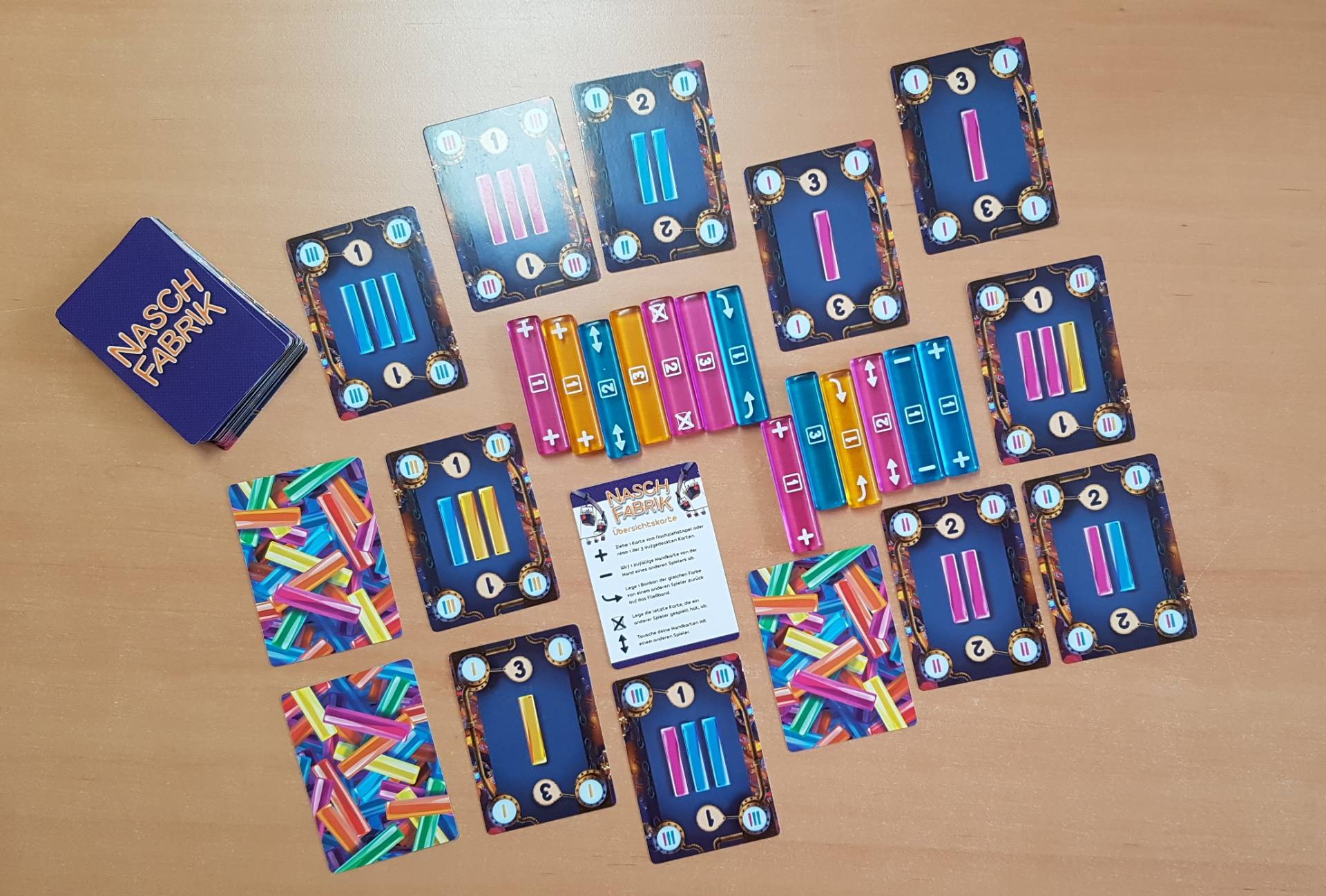 In Naschfabrik spielt ihr Bestellkarten aus und nehmt euch die passende Bonbon-Kombination. Jedes Bonbon hat einen eigenen Effekt, den ihr auslöst, wenn ihr es euch nehmt. Die Effekte bringen euch Vorteile oder ärgern eure Gegner. Das Spiel ist vorbei, wenn das letzte Bonbon genommen wurde oder der Stapel mit den Bestellkarten leer ist. Wer am Ende des Spiels die meisten Punkte hat, gewinnt.