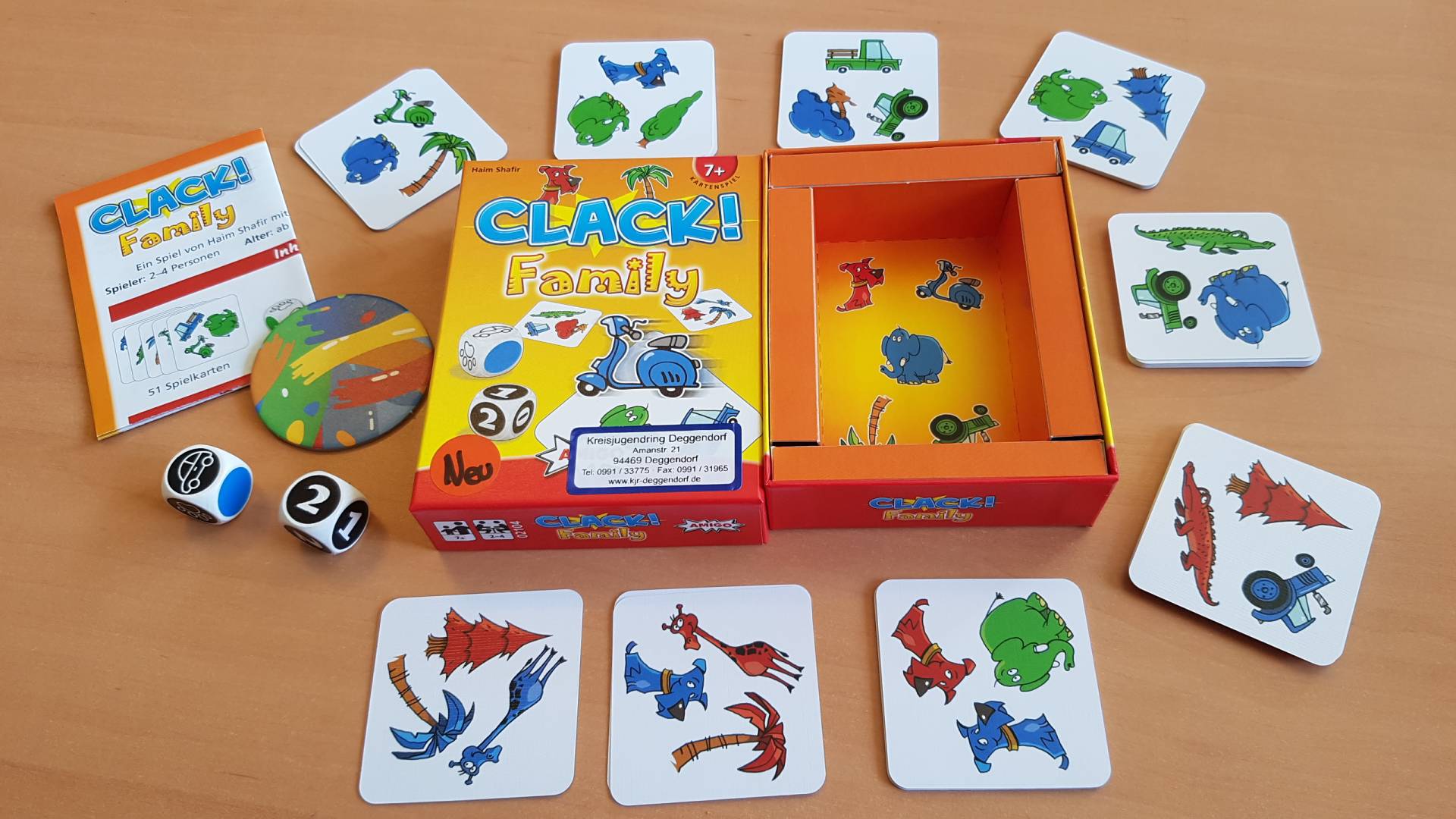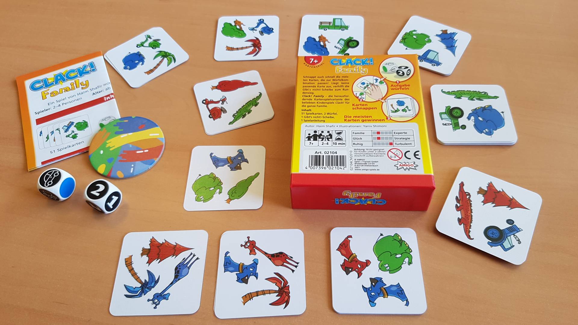 Clack! Family ist die Kartenspielvariante des beliebten Kinderspiels Clack! von Erfolgsautor Haim Shafir aus dem Jahr 2012 und bietet nun auch Action für die ganze Familie.