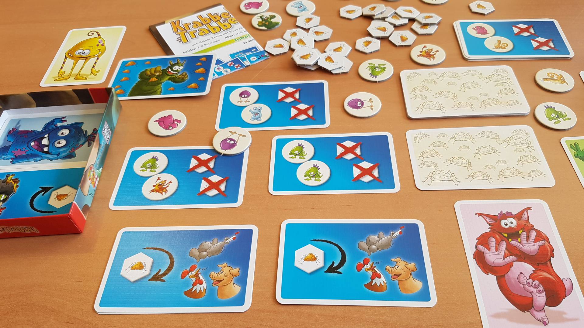 Werdet die kleinen Krabbler los, die auf den lustigen Monstern herumspringen! Zieht monströse Grimassen, kocht eine besonders „leckere“ Monstersuppe, löst knifflige Memo-Aufgaben und macht verrückte Tiergeräusche – das wird die kleinen Nervensägen sicher vertreiben. Wer als Erster alle Krabbler los ist, gewinnt!