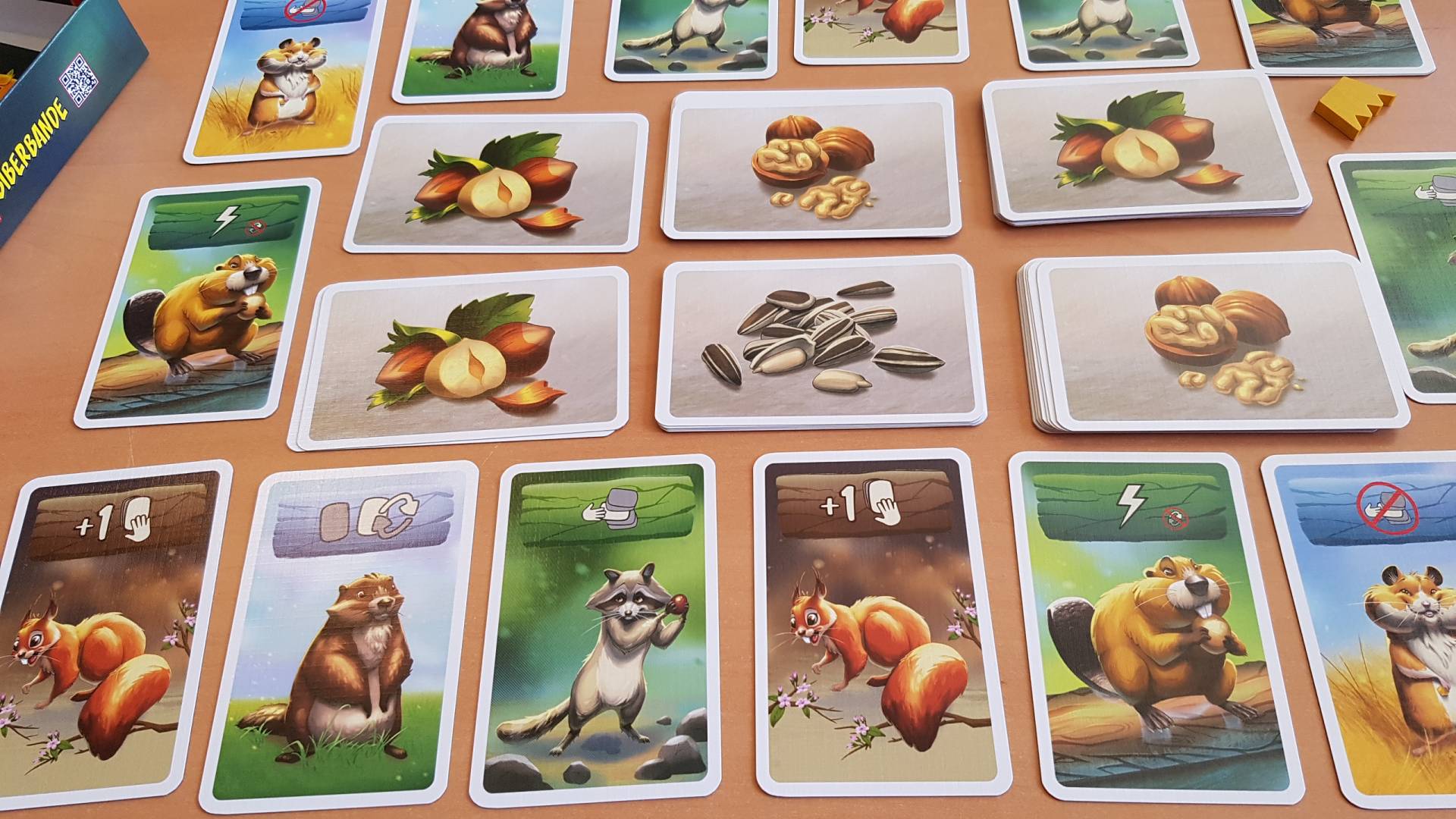 Jeder Spieler erhält fünf Tierkarten, von denen in jeder Runde zwei ausgespielt werden. Biber, Eichhörnchen, Waschbär, Hamster und Murmeltier haben alle unterschiedliche Eigenschaften, um Beute zu ergattern oder die eigene Beute zu sichern. Beginnend beim Startspieler, deckt jeder Spieler eine seiner ausgespielten Karten auf und führt die jeweilige Aktion aus. So erhält man zum Beispiel begehrte Futterkarten vom Nachziehstapel, klaut Haselnüsse, Sonnenblumenkerne oder andere Futterkarten von einem Mitspieler oder schützt sich davor, selbst beklaut zu werden. So wird reihum weitergespielt, bis ein Spieler fünf gleiche Futterkarten gesammelt hat und damit sofort das Spiel gewinnt.
