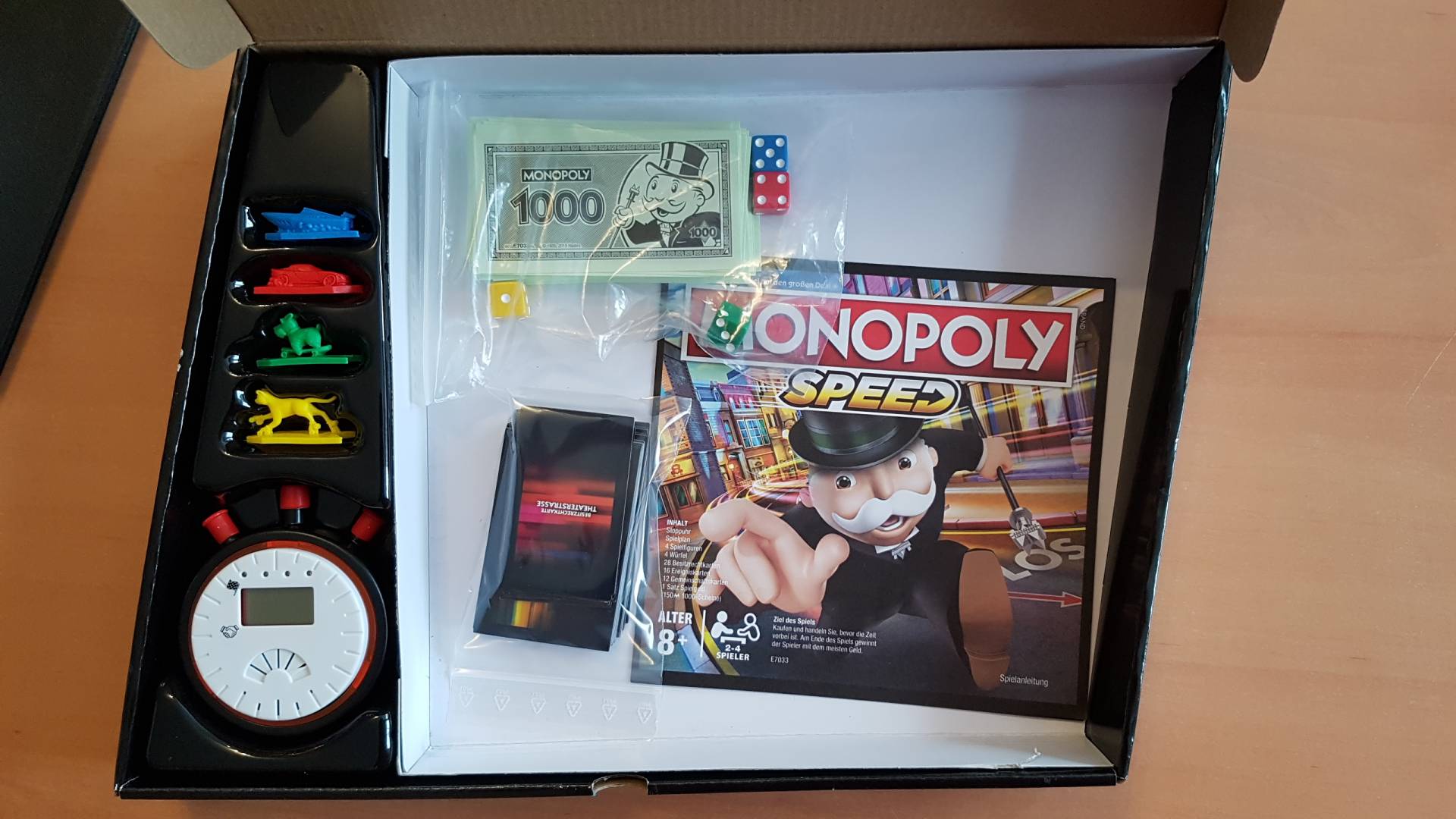Haben Sie Lust auf Monopoly, aber nicht viel Zeit? Kein Problem! Monopoly Speed kann tatsächlich in weniger als 10 Minuten gespielt werden! Hier würfeln und kaufen die Spieler gleichzeitig und müssen nicht warten, bis sie an der Reihe sind. In 4 spannenden Runden liefern sich die Spieler einen rasanten Wettlauf gegen die Zeit, wenn es darum geht, die Grundstücke schneller als jemals zuvor zu kaufen, zu verkaufen und damit zu handeln. Die Stoppuhr gibt den Countdown für jede Kauf- und Handelsphase vor und zwischen den Phasen gibt es keine Pause. Der Spielplan zeigt sogar 2 LOS-Felder und die Spieler können völlig kostenlos aus dem Gefängnis freikommen. Monopoly Speed eignet sich hervorragend für einen Familienspieleabend oder eine Party mit Freunden und bietet eine kurzweilige und vergnügliche Pause vom Alltag.