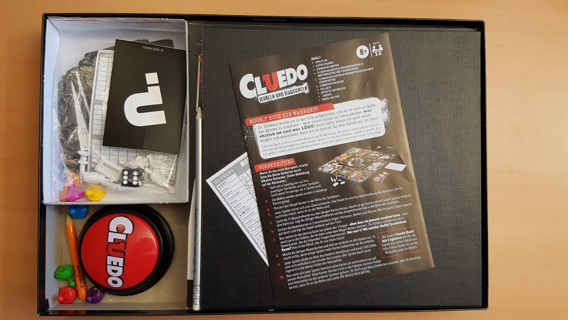 Bei Cluedo Mogeln und Mauscheln gilt es, geschickt zu lügen, um die Wahrheit zu enthüllen. Hier ist jeder verdächtig und man kann niemandem trauen – auch nicht seinen Mitspielern. Mit Mauschelkarten (6 Lügen- und 6 Wahrheitskarten) schlüpfen die Spieler in die Rolle von Detektiven, um herauszufinden, wer Dr. Schwarz in der Villa ermordet hat. Ziehen Sie eine Karte, lesen Sie sie laut vor, bleiben Sie cool und überzeugen Sie Ihre Mitspieler davon, dass Sie die Wahrheit sagen... Falls ein Spieler Ihnen eine Lüge unterstellt, drückt er den Mogel-Button. Hat er Sie beim Mogeln ertappt oder haben Sie doch die Wahrheit gesagt? So oder so – eine Beweiskarte wird enthüllt und die Spieler sind der Lösung des Mordfalls einen Schritt nähergekommen. Ist ein Detektiv bereit, Anklage zu erheben, schaut er heimlich in der Fallakte nach, denn hier verbirgt sich die Antwort auf die Frage wer es war, mit welcher Waffe und in welchem Raum die Tat geschah. Bei einer richtigen Anklage gewinnt er das Spiel!