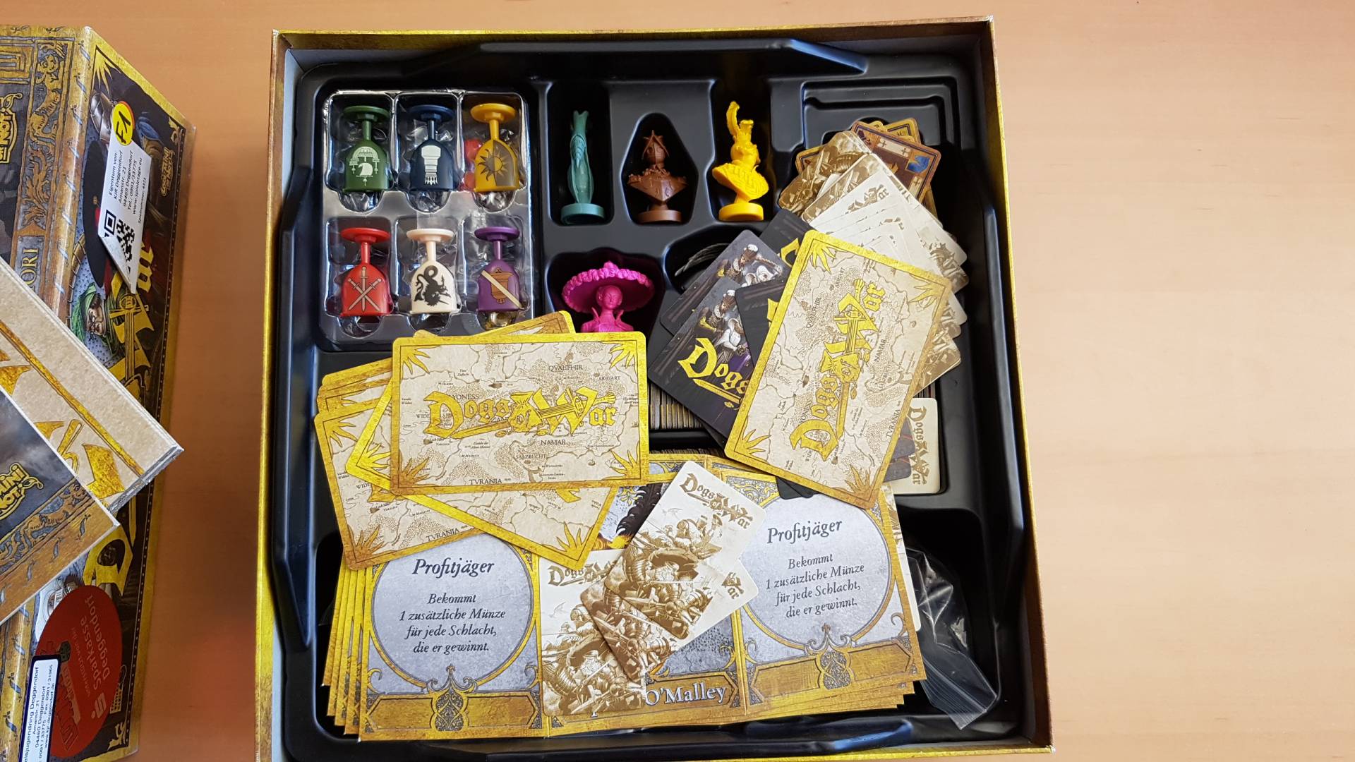 Dogs of War is an elegant game set in a steampunk-influenced renaissance universe. Noble houses engage each other in a series of fierce battles, and it s up to the players and the Dogs of War they control to deploy their private armies in support of whatever house they wish to favor. Clockwork knights and imposing war machines shift the tides of war as they enter the battlefields, but the interest of their Dog of War captains actually lie in the rewards offered by each noble house to its supporters. Each Dog of War has a special ability that helps them claim influence, win battles, or betray the house to which they ve sworn allegiance!