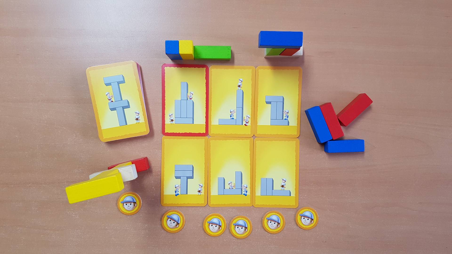 An die Steine - fertig - los! Hier spielen alle Baumeister gleichzeitig. Jeder hat eigene Bausteine und versucht als Erster, das Bauwerk zu errichten. Stein auf Stein - bloß nicht wackeln. Der bekannte Bauspaß jetzt auch für kleine Baumeister.
