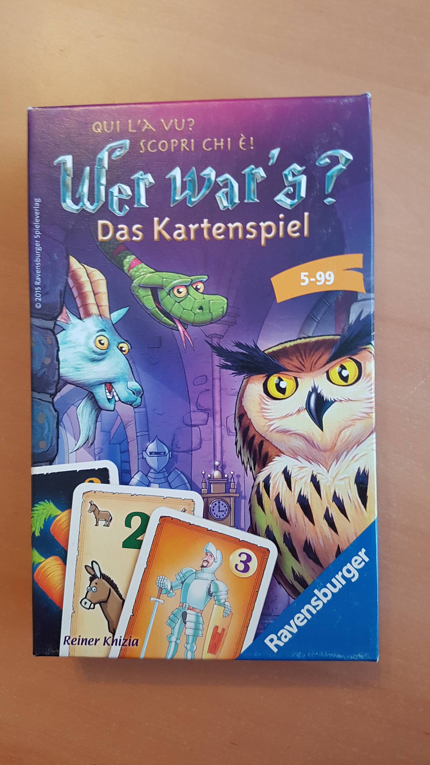 Wer war s: Das Kartenspiel is a card game played with three types of cards: food, animals and suspects. The ten suspects are face-up on the table, as is one card of each of the four animal types. Each turn, a player can perform one of three actions: