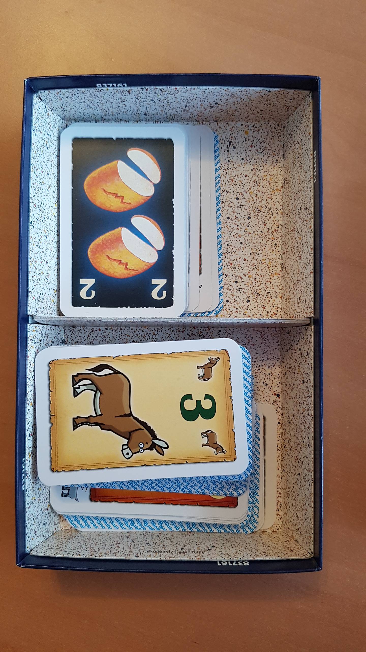 Take one of the open animal cards by paying the amount of food shown on the card, using only one type of food (apples, bread or carrots).