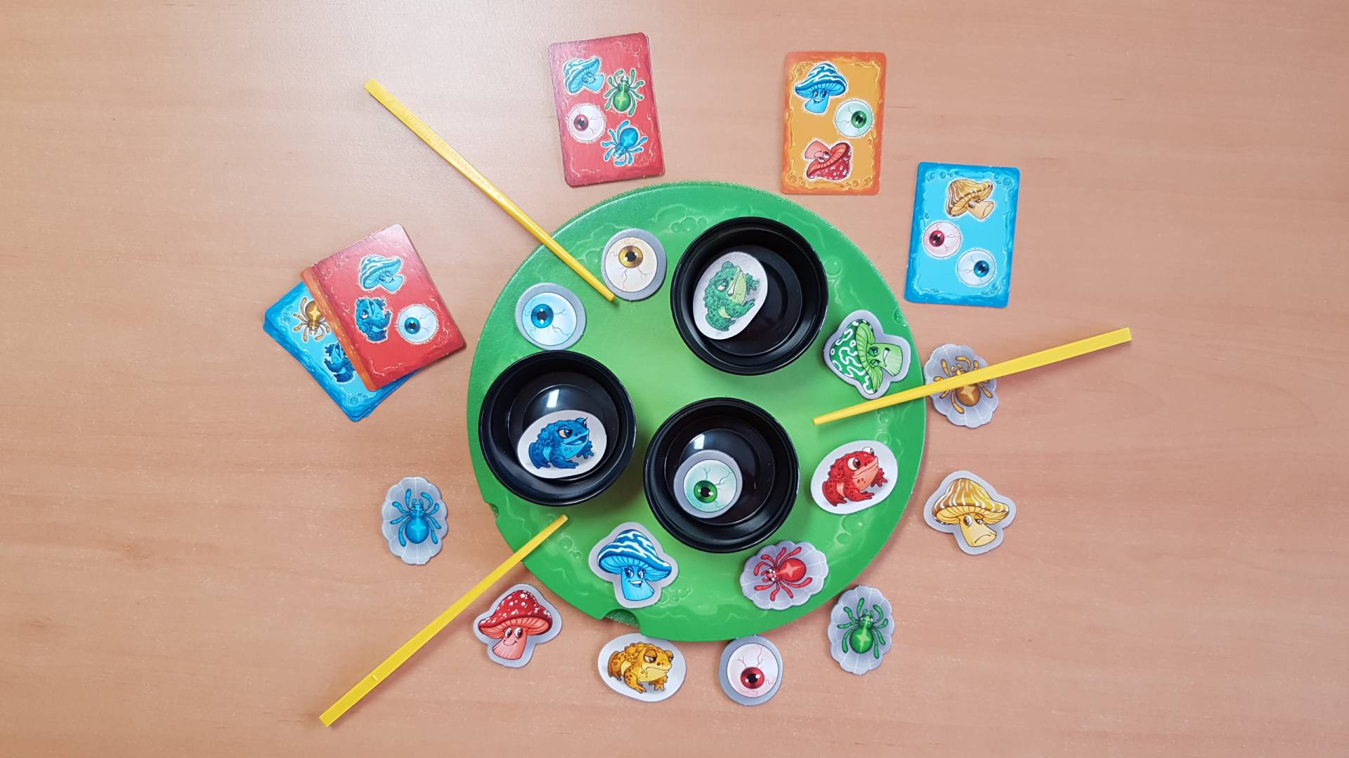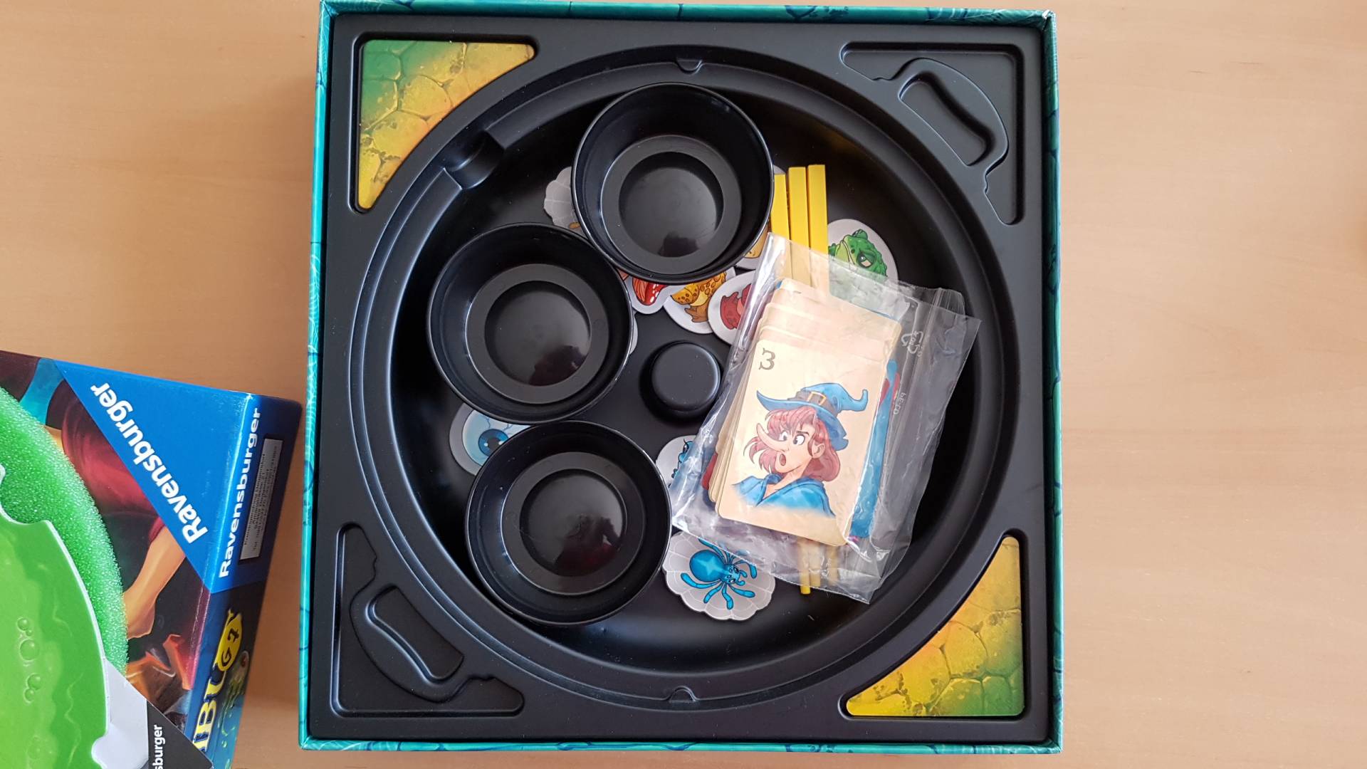 Beim großen Wettstreit unter den Zauberlehrlingen sind Hektik und viel Spaß garantiert. Wer setzt seinen Zauberstab am geschicktesten ein und lässt die Zutaten für seinen Zaubertrank – Hokus Pokus, Flipibus! – am schnellsten in seinen Kessel hüpfen?
