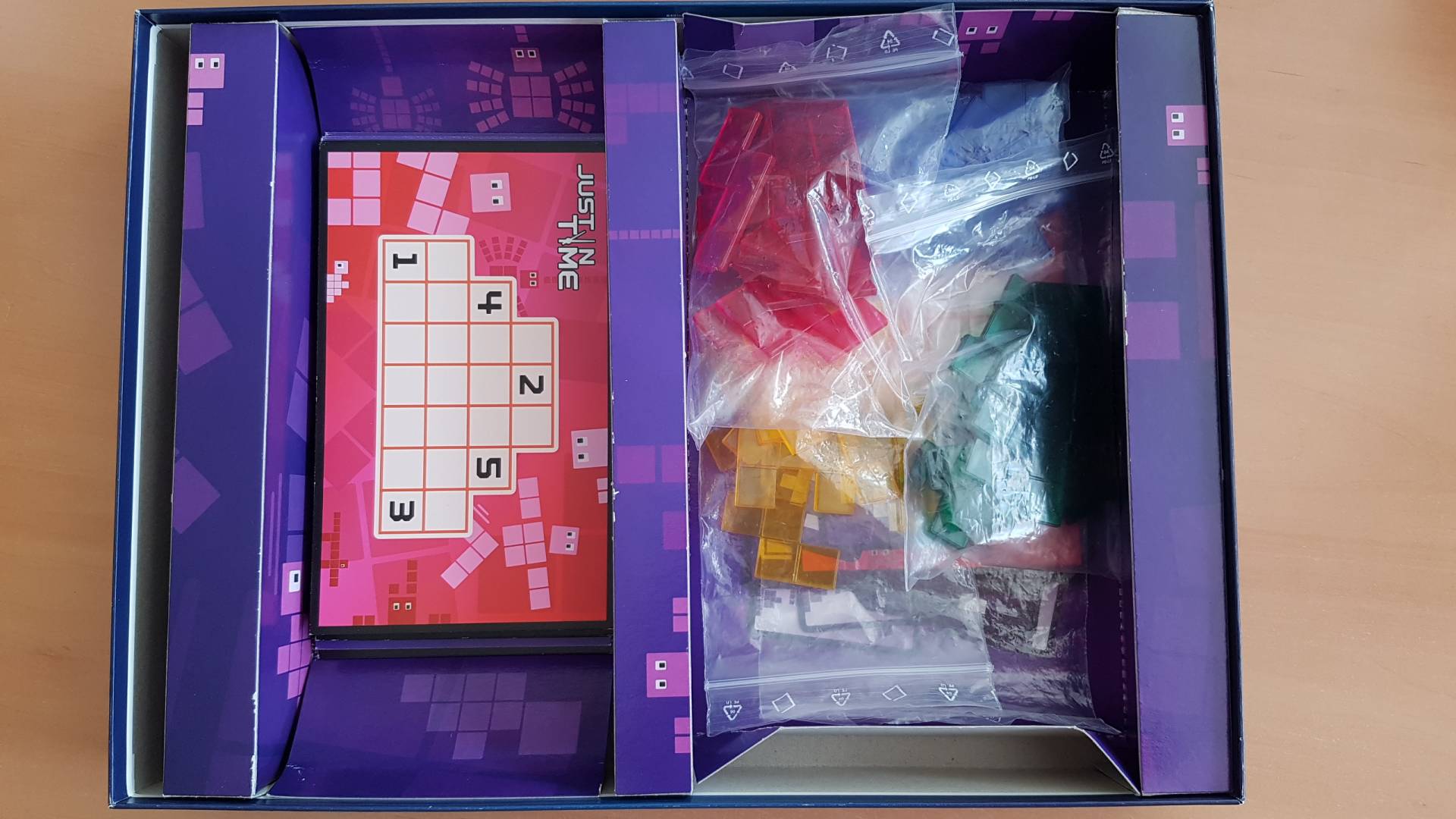 Jeder Spieler versucht, seine Spielsteine schneller als die anderen auf seinen Legetafeln unterzubringen. Doch an den richtigen Stellen Lücken zu lassen, das ist die Kunst! Denn viele Punkte gibt es nur, wenn die Lücken möglichst hohe Zahlen zeigen und kein Stein übersteht! Wer schafft die verzwickten Puzzleaufgaben just in time?