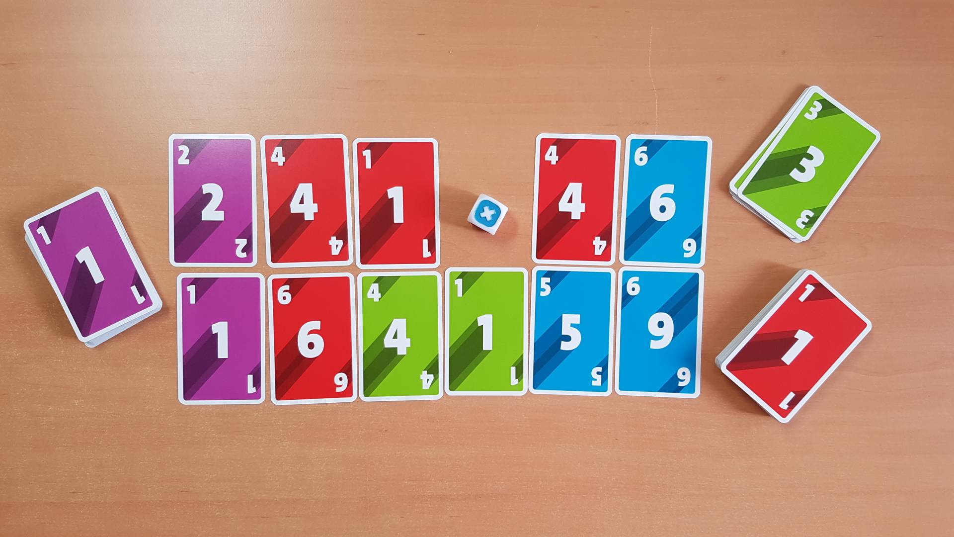 Wer sich jedoch fürs Zocken entscheidet, kann auch zu weit gehen. Sobald eine Farbe und/oder eine Zahl aufgedeckt wird, die bereits in den Reihen liegt, ist der Zug vorbei! Derjenige Spieler, der zu weit gegangen ist, sammelt keine Reihe ein. Und es kommt noch schlimmer! Zur Strafe muss er den Würfel werfen und alle gesammelten Karten der gewürfelten Farbe aus seiner Auslage auf den Ablagestapel legen – und verliert somit wertvolle Punkte, die am Ende über Sieg oder Niederlage entscheiden können!