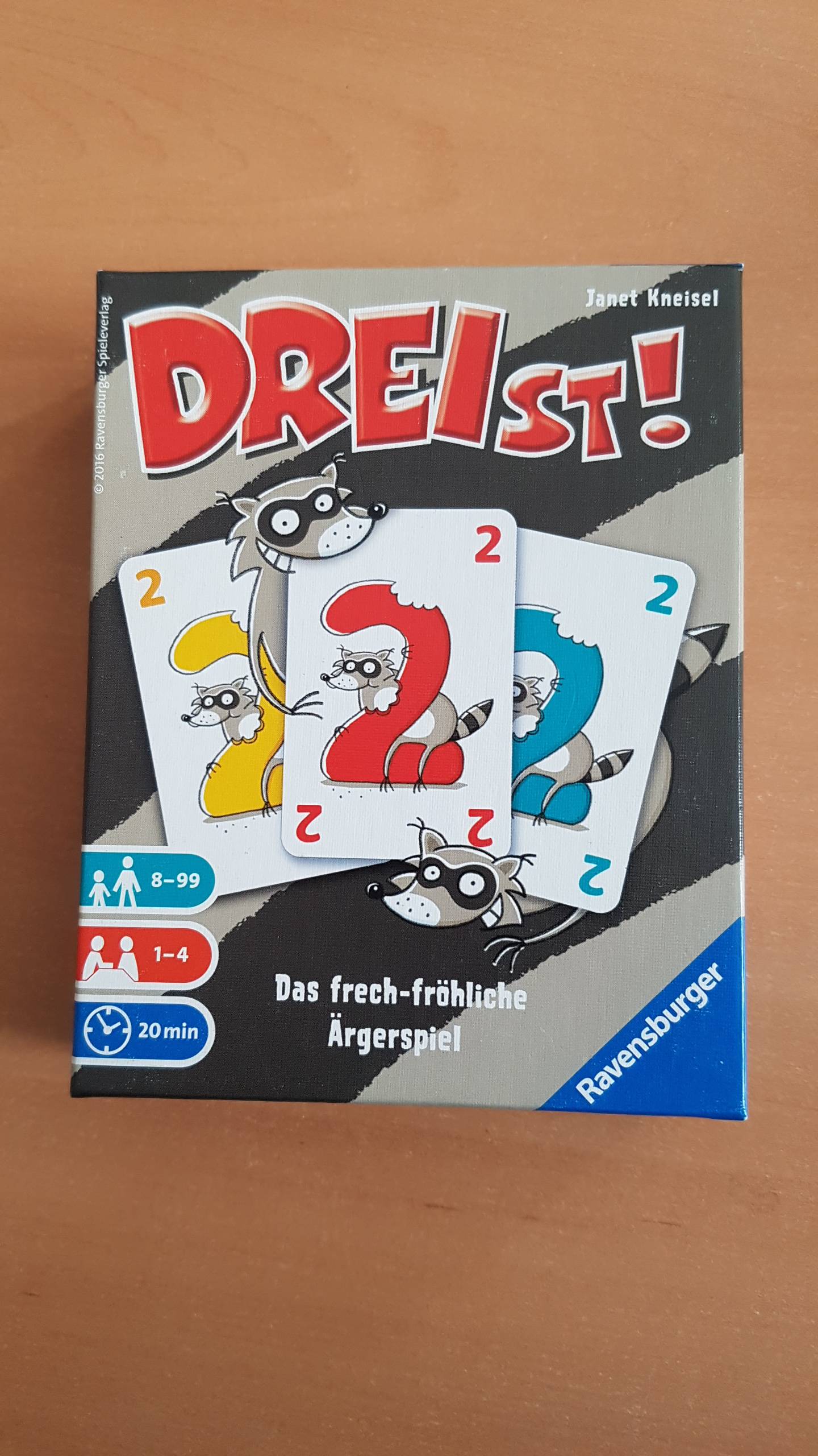 DREIstigkeit siegt! Bloß keine falsche Bescheidenheit: Zwei 4er hier angelegt, drei 6er dort – und schon ist die Kartenhand leer gespielt und man kann den lieben Mitspielern eigene Karten als „dreistes Geschenk“ unterjubeln. Wer ist in diesem spannenden Ablegespiel für 1-4 Spieler am dreistesten und „verschenkt“ die meisten Karten? Wer wird seine Karten als Erster los? Inklusive spannender Solo-Variante! (Ravensburger)