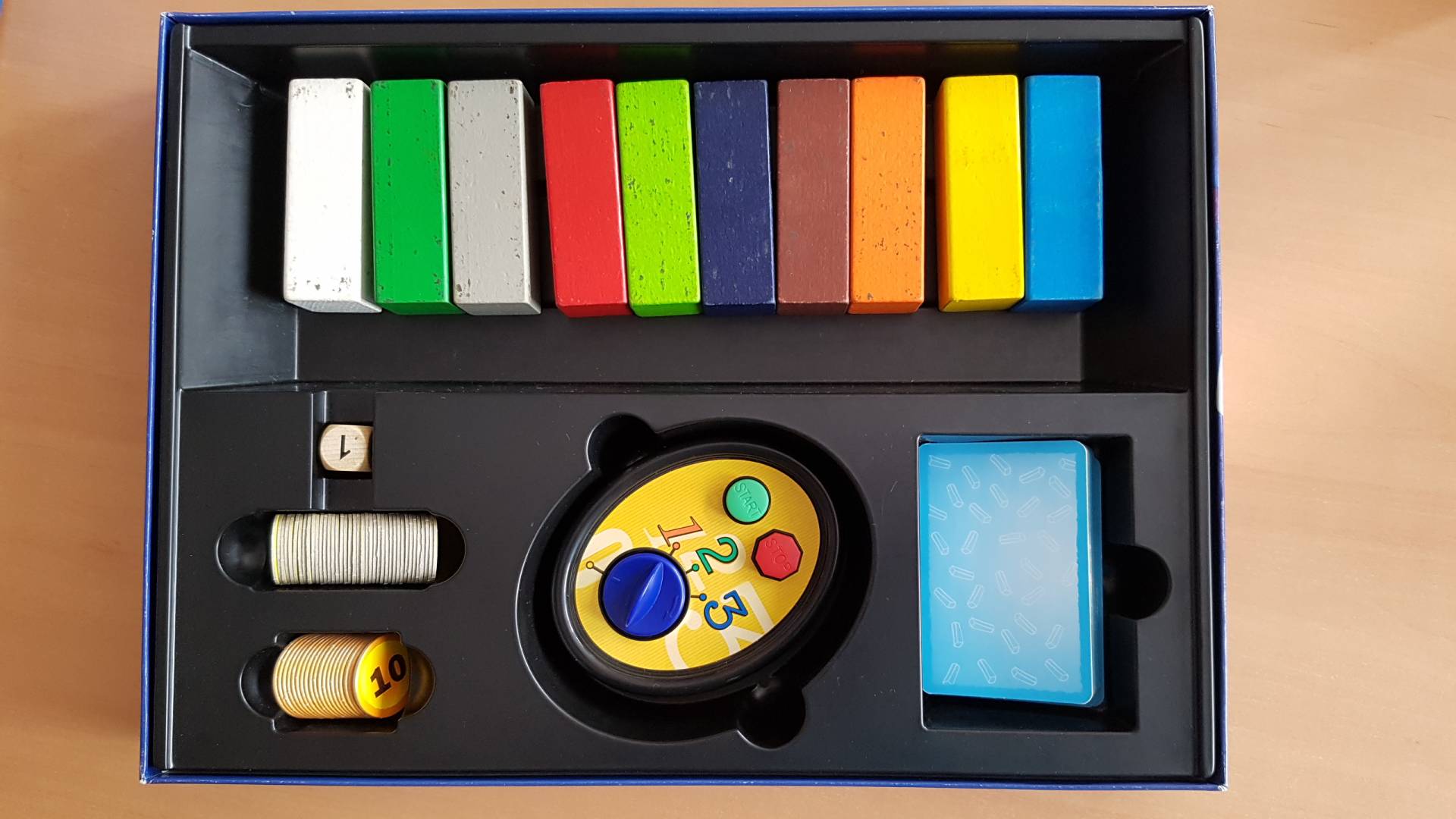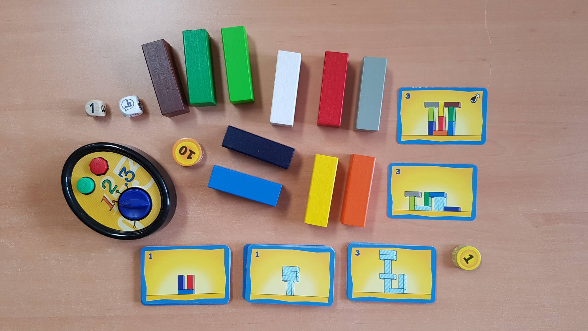 Mit 10 farbigen Bauklötzen gilt es, so schnell wie möglich die vorgegebenen Bauwerke korrekt nachzubilden. Ein Timer limitiert die Zeit. Flinke Finger sind gefragt, denn wer am Ende die meisten bzw. punkteträchstigsten Baukarten vorweisen kann, gewinnt das Spiel.