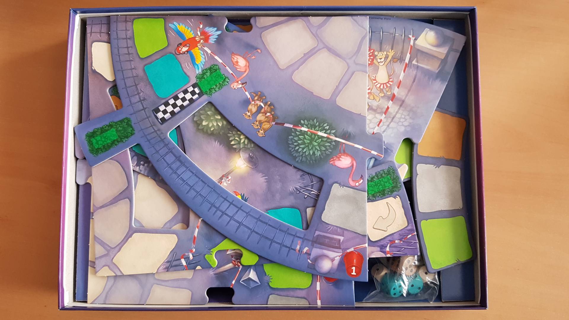 Mit diesem verrückten Würfelspiel ist alles möglich! Die 2-5 Spieler laufen mit ihrem Golfwagen durch den nächtlichen Zoo. Was neben viel Kühnheit und noch mehr Glück mit den Würfeln gebraucht wird, ist das richtige Tier zur richtigen Zeit. Manchmal ist der agile, schnelle Gepard von Vorteil, manchmal das langsame, aber anhaltende Nashorn, manchmal schleichen sie sich mit der Geschwindigkeit einer Schnecke. Selbst das Kamel kann den Sieg bringen! Alle mit dem Ziel, die abwechslungsreiche, immer neue Rennstrecke zu meistern.