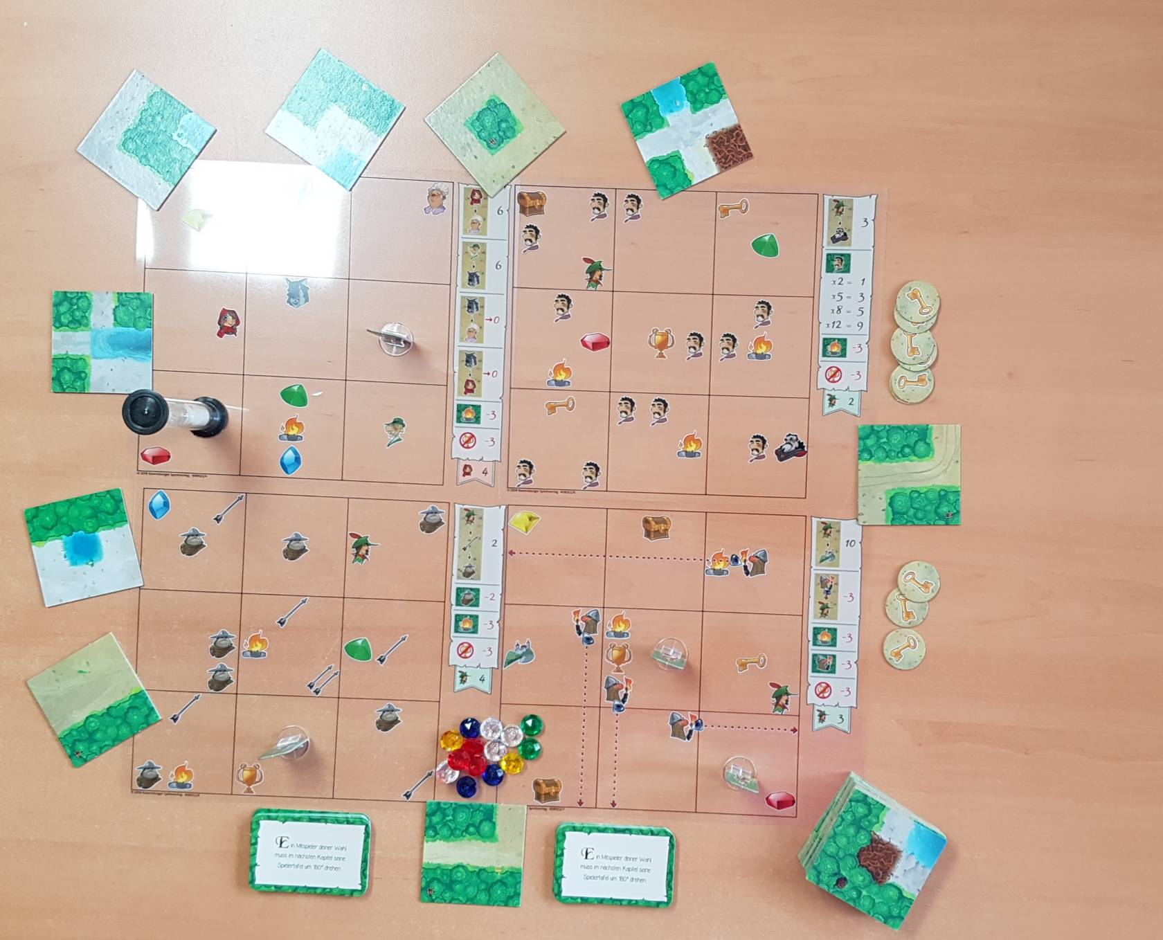 Das fabelhafte Legespiel für wahre Helden und solche, die es werden wollen. Vier spannende Geschichten entführen die Spieler in die wunderbare Welt der Sagen und Legenden. Die Spieler müssen König Artus helfen, sein Schwert zu finden, indem sie eine Landschaft aus Wald und Wegen legen. Sie müssen Dracula entkommen und dabei schneller und cleverer als die Mitspieler sein! In diesem außergewöhnlichen Legespiel erschaffen 2 bis 4 Spieler möglichst schnell eine Landschaft aus ihren Wald- und Wegekarten. Eine bedruckte Klarsichtfolie wird anschließend oben auf die Landschaft gelegt und zeigt, welche Aufgaben die Spieler erfüllen können. So darf Rotkäppchen nur über Wege zur Großmutter gelangen, Robin Hood hingegen nur durch den Wald schleichen. 20 Folien erzählen Kapitel für Kapitel die vier enthaltenen Geschichten nach. In jedem Kapitel gilt es neue Aufgaben zu meistern. Dafür sind ein gutes Auge und räumliches Vorstellungsvermögen gefragt. Ist der böse Wolf im Wald versteckt? Kann König Artus sein Schwert erreichen und dabei möglichst viele Edelsteine einsammeln? Die Spieler haben das Schicksal der Helden selbst in der Hand. Für noch mehr Abwechslung sorgen die kniffligen Rückseiten der Wegekarten und die Meisterfolien. So lassen sich alle Geschichten immer wieder neu erleben. Das Legespiel mit vier fabelhaften Abenteuern und hochwertige Ausstattung.