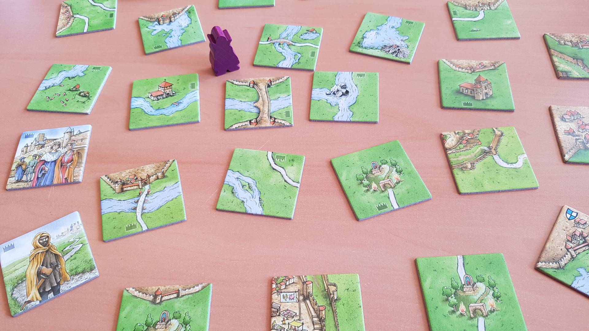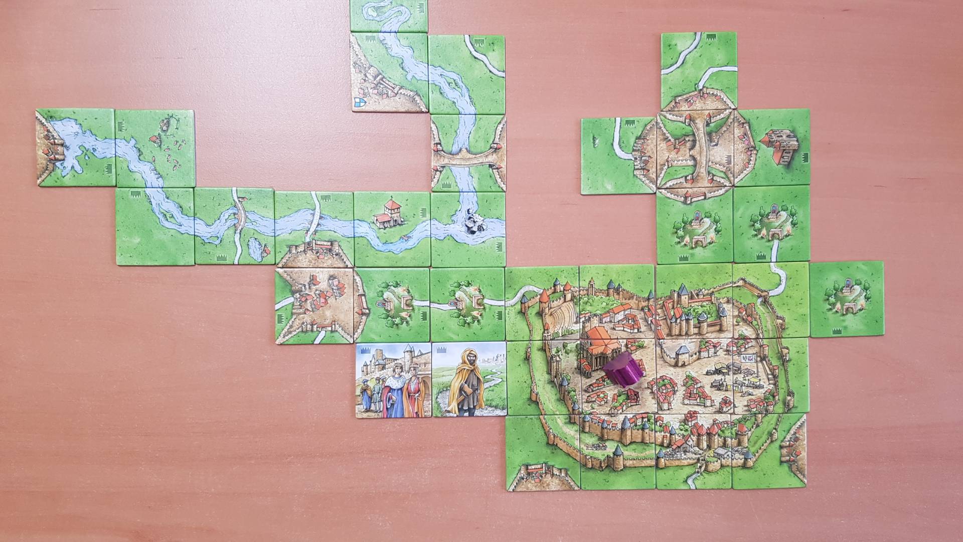 In Carcassonne erstellen die Spieler mittels Zusammenfügen quadratischer Kärtchen bzw. Plättchen gemeinsam eine Landkarte. Durch Spielfiguren (Gefolgsleute) können die Spieler Städte, Straßen, Klöster und Wiesen für sich vereinnahmen und erhalten Punkte, sobald das jeweilige Gebiet abgeschlossen ist (mit Ausnahme der Wiese, deren Wertung stets erst nach Spielende Berücksichtigung findet) oder das Spiel endet, weil keine unverbauten Spielkärtchen mehr verfügbar sind. Nach der Wertung der auf der Landkarte befindlichen Gefolgsleute gewinnt derjenige Spieler, der die meisten Punkte für sich verbuchen konnte.