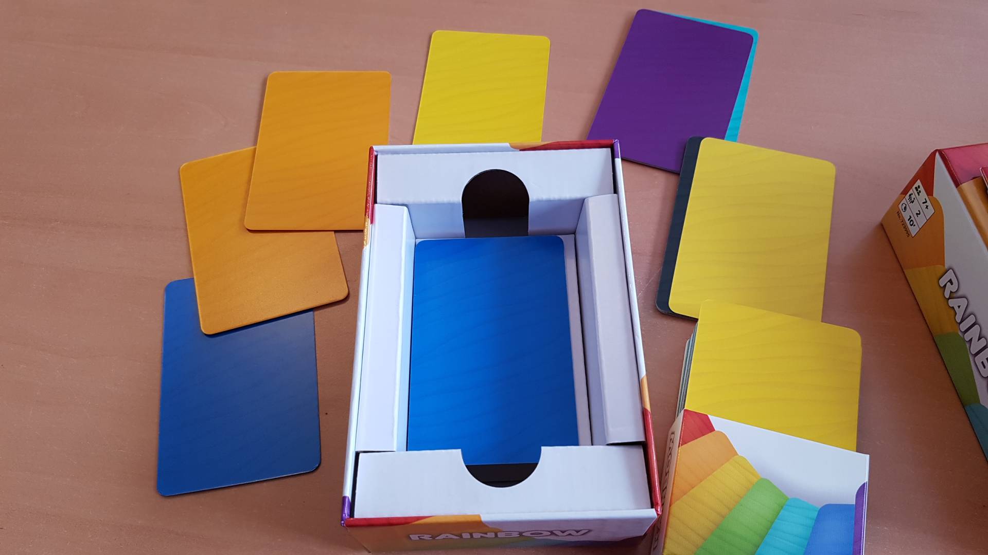 In Rainbow sind alle Karten beidseitig mit einer Farbfläche bedruckt und gehören nur zur Hälfte dir: Die Vorderseiten für dich, die Rückseiten für dein Gegenüber. Merke dir die Kartenrückseiten deines Gegners und kombiniere sie gekonnt mit deinen Vorderseiten. Wer es schafft, einen Rainbow