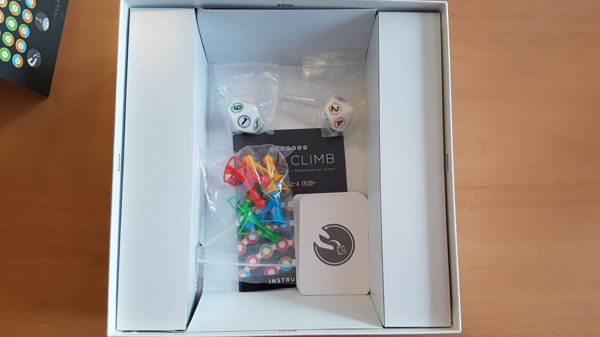 „Prime Climb“ weckt eure Liebe zur Mathematik! Mit seiner tollen Mischung aus Strategie und Glück ist dieses schnelle Spiel einfach genug für Kinder und bietet trotzdem ausreichend Dynamik für Erwachsene. Durch die geniale Farbkodierung wird Rechnen zum Kinderspiel! Würfelt, addiert, subtrahiert, multipliziert und dividiert euch bis in die Mitte des Spielplans vorwärts. Dabei sammelt ihr Primzahlkarten und scheucht eure Mitspieler zurück zum Start. Wer als erster seine beiden Spielfiguren zur 101 bringt, hat GEWONNEN!