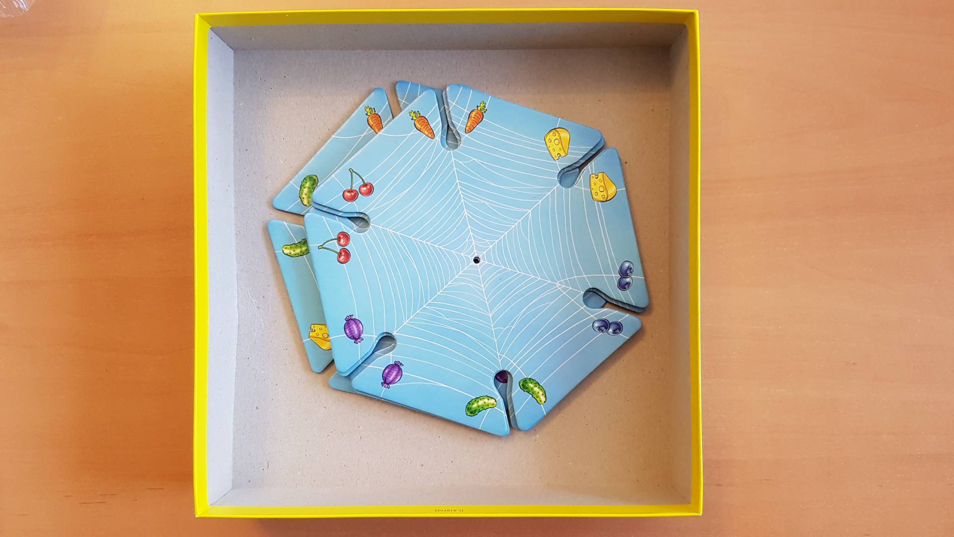 Spinne Walli und ihre Freunde haben heute ganz besonders schöne und große Netze gesponnen. Doch darin landen keine Fliegen, sondern Käse, Bonbons und andere Leckereien! Die Kinder helfen den Spinnen, dorthin zu krabbeln, indem sie würfeln und geschickt fädeln. Aber Vorsicht: Der Spinnfaden wird dabei immer kürzer … Wer seine Spinne am längsten über das Netz krabbeln lassen kann, gewinnt. Ein geschicktes Wickelspiel.