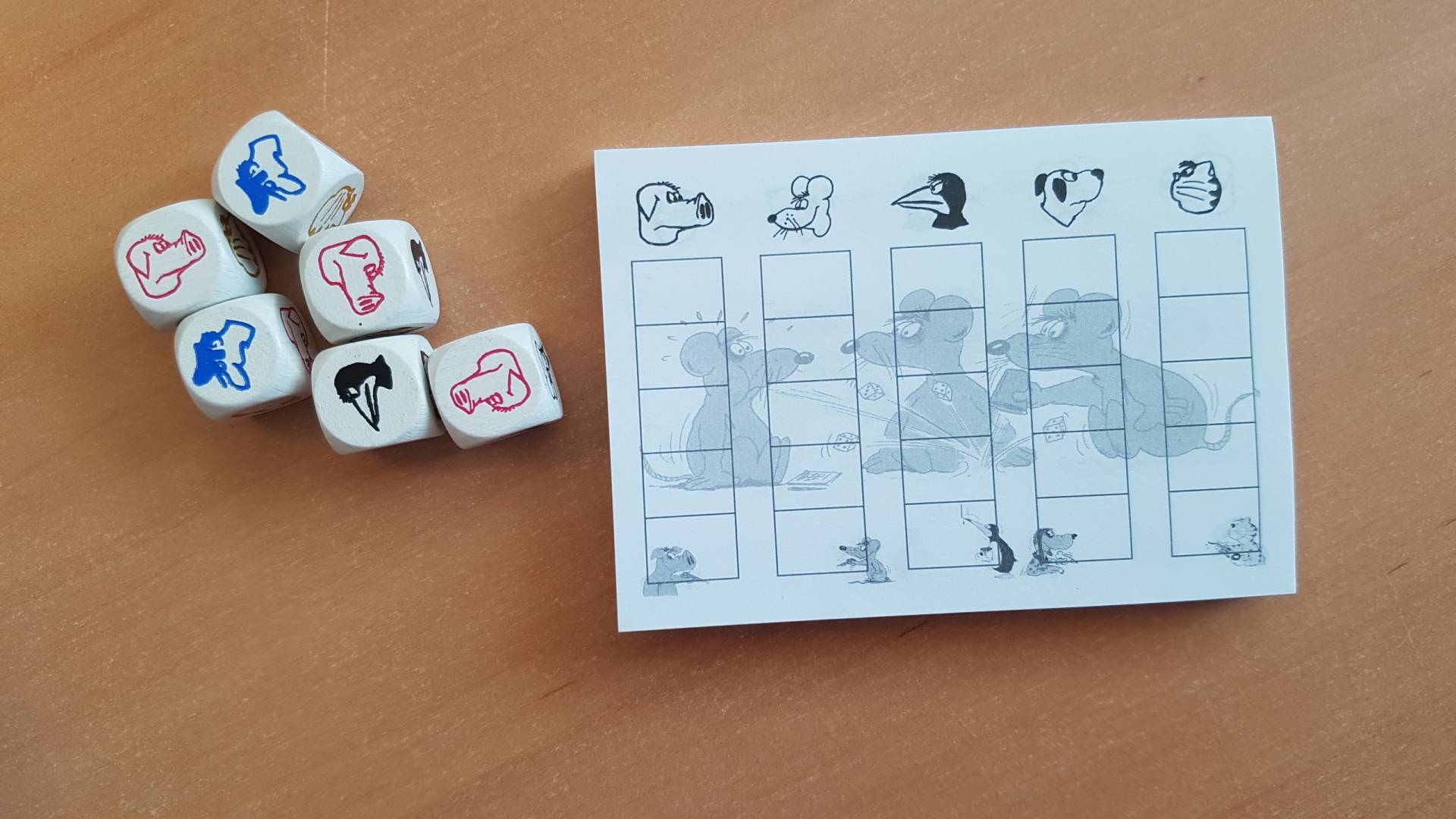 Hund, Katz’ und Maus, Pinguine und Schweine. In diesem flotten Würfelspiel treffen sie alle aufeinander. Hier erhält man nur dann Punkte, wenn das eigene Tier am häufigsten im Wurf vorkommt. Doch Vorsicht: Wer zu viel riskiert, schanzt seinen Mitspielern die Punkte zu! Aber wer bis zum Schluss die Nerven behält, gewinnt!