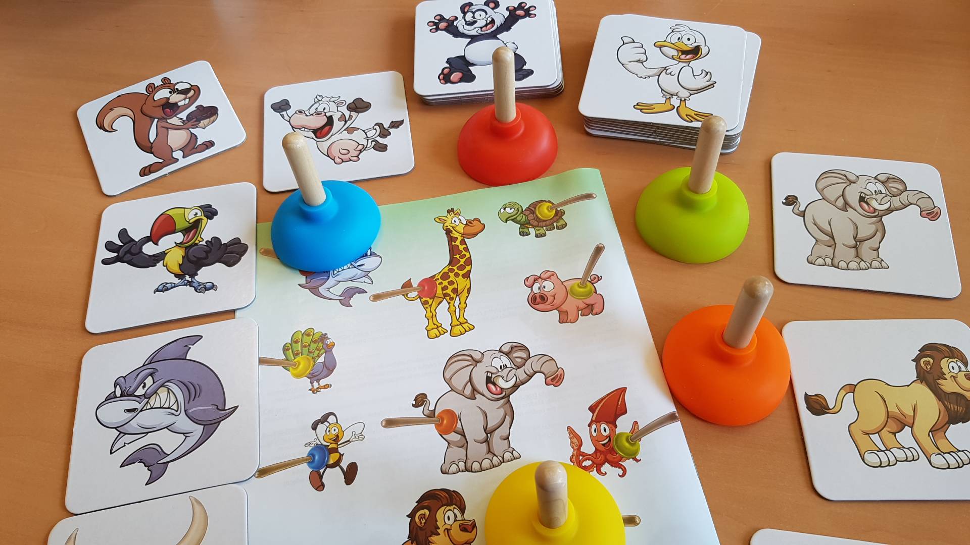 Die inkludierten Pömpel zum Schnappen der Karten geben dem Spiel einen besonderen Pfiff und sorgen für zusätzlichen Spaß.