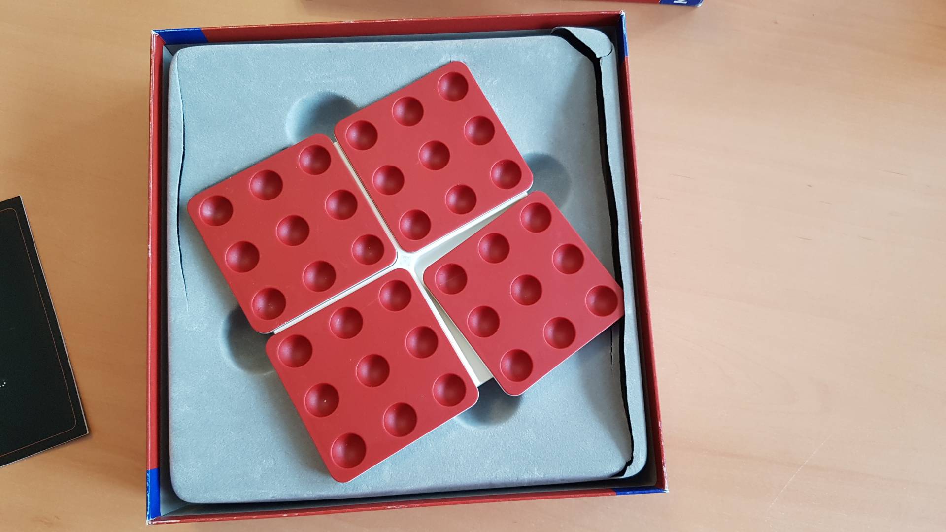 Ein herrlich kurzweiliges Spiel mit einfachsten Regeln und verblüffenden Wendungen. Die Spieler setzen abwechselnd eine Kugel aufs Spielbrett. Wer als Erster fünf eigene Kugeln in einer Reihe hat, gewinnt. Zu einfach? Weit gefehlt – denn nach jedem Setzen drehen Sie eines der vier Quadrate und schon sieht das Spiel ganz anders aus! Schnell gespielt und doch so raffiniert – Pentago wird Sie nicht mehr loslassen!