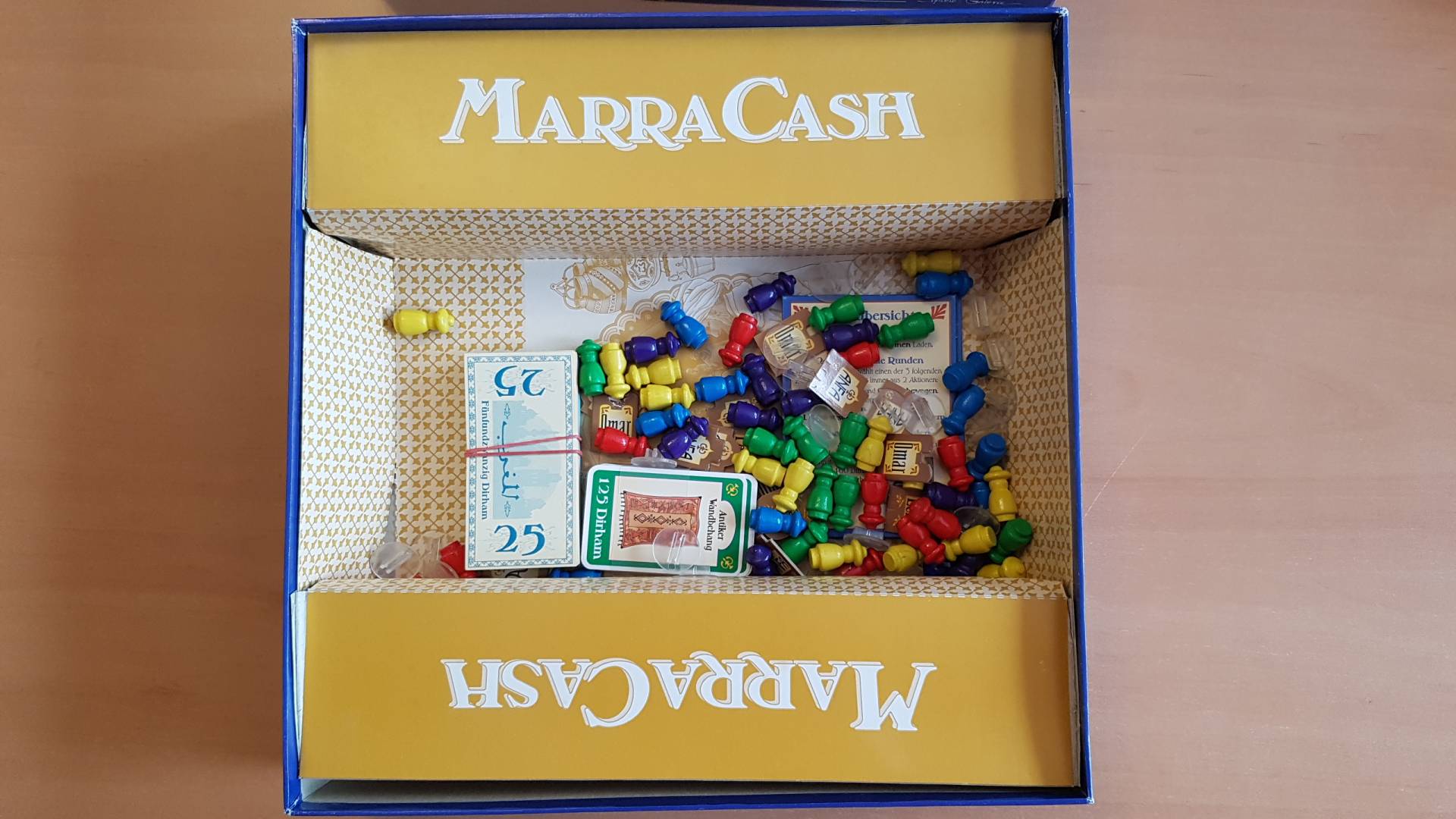 Wenn alle Besucher die Stadt betreten haben, geht das Spiel zu Ende. Wer dann die meisten Dirham verdient hat, gewinnt.