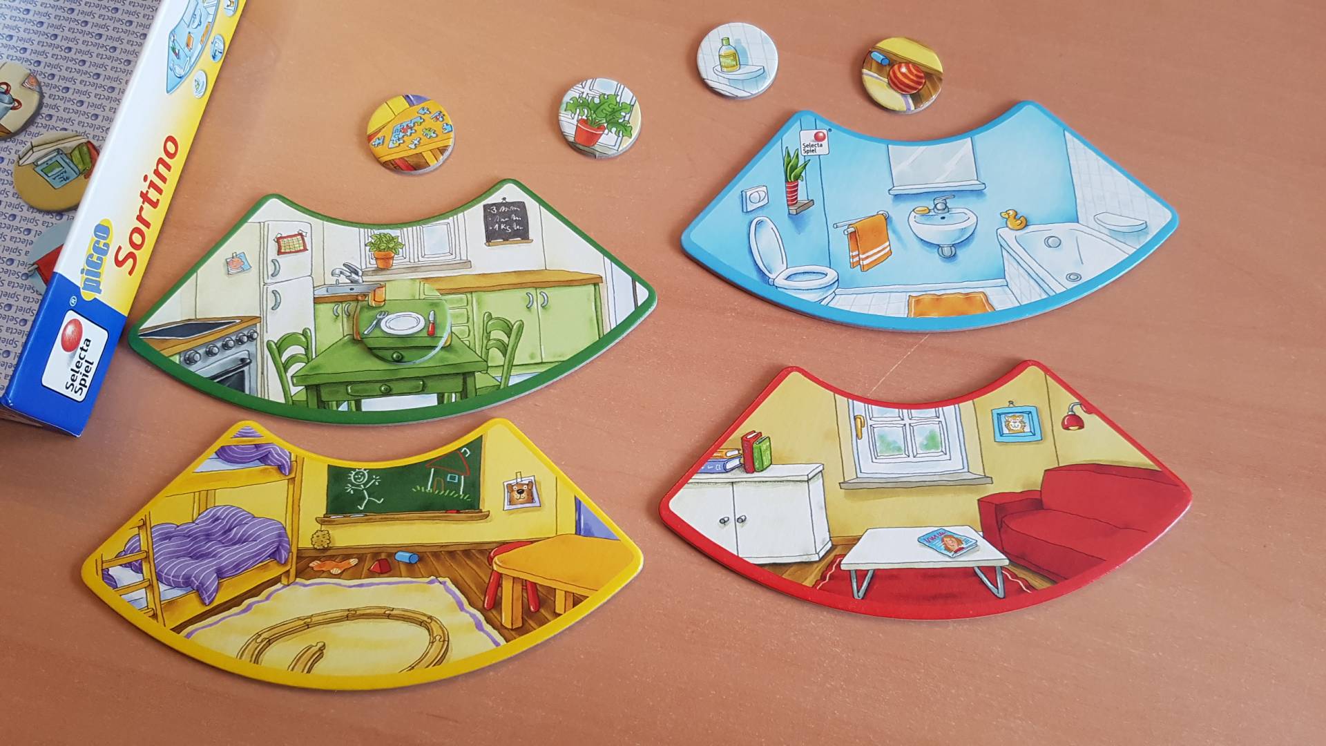 What a mess! Fortunately, there are the little gnomes who like to clean up. The pot is in the kitchen, but one where should the pillow go? The player who is the first to put all his goods into the right room, wins. A memory game for children.