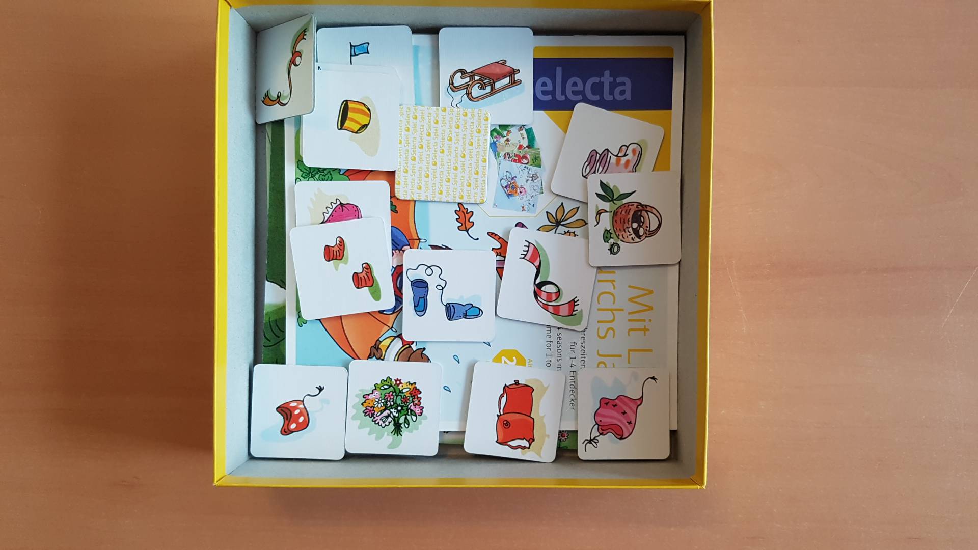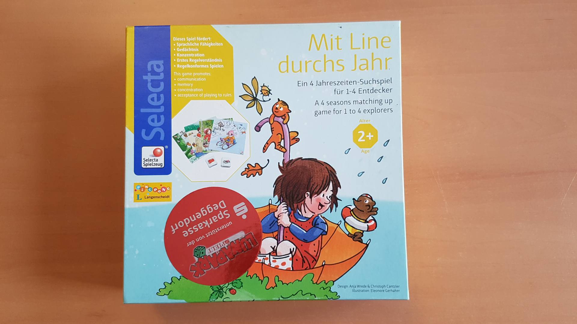 Line und ihr kleiner Freund, der Piratenbär, spielen am liebsten im Freien. Dabei haben sie zu jeder Jahreszeit viel Spaß! Die kleinen Spieler entdecken mit ihnen die saisonalen Unterschiede von Wetter und Natur und lernen dabei, passende Kleidung und Gegenstände zuzuordnen. Vielseitiges, spannendes Spiel in 2 Varianten (Memo- und Zuordnungsspiel!)
