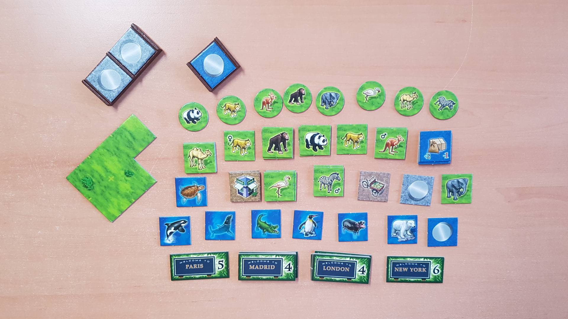 Sie erhalten eine weitere Ausbautafel und neue Plättchen, die das Spiel um ein neues taktisches Element bereichern: Die Becken mit den Tieren müssen jetzt durch Vorratsplättchen versorgt werden. Wenn es dem Spieler gelingt, alle seine Becken zu versorgen, erhält er Pluspunkte. Gelingt das nicht, gibt es Punktabzug!