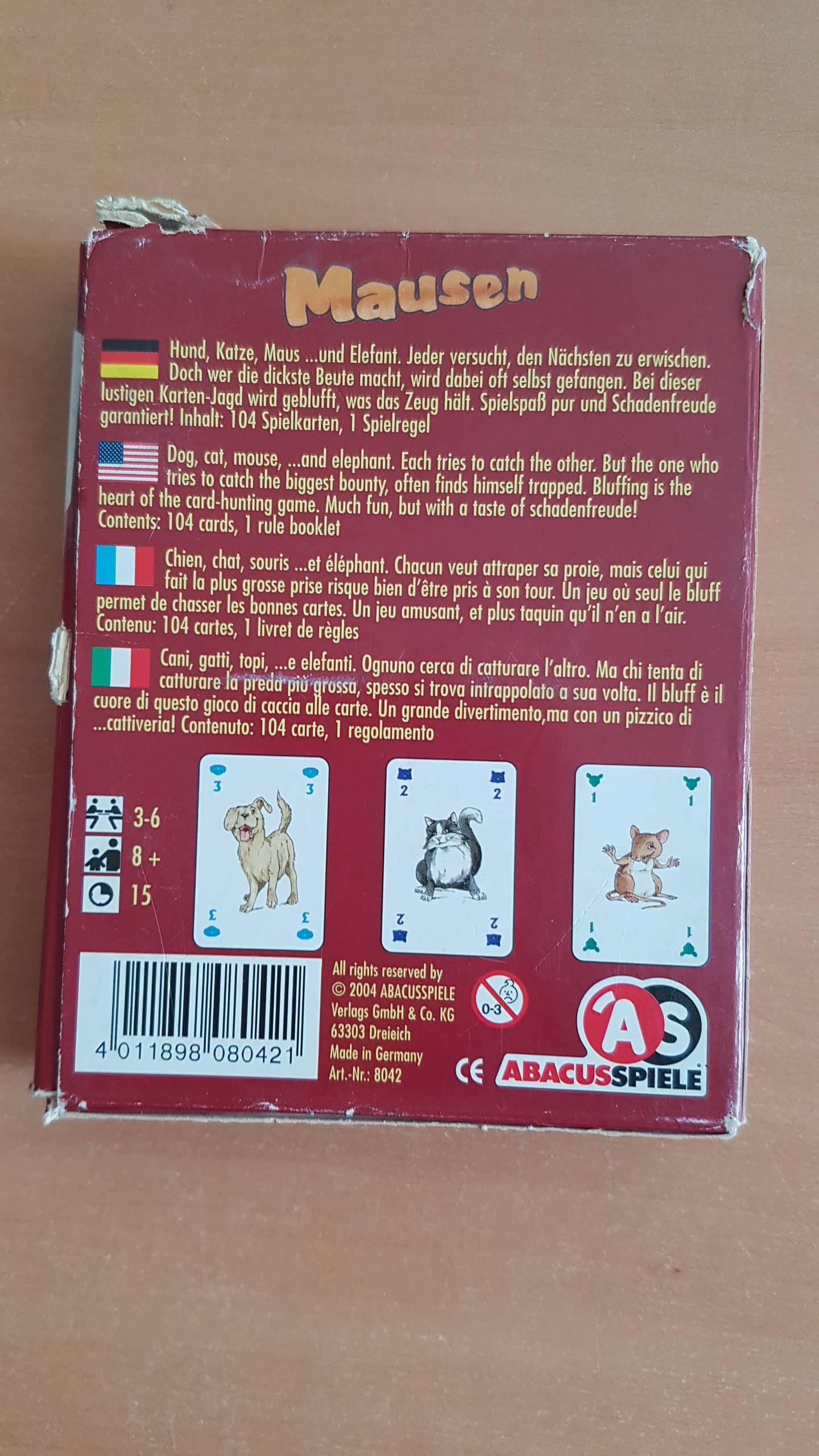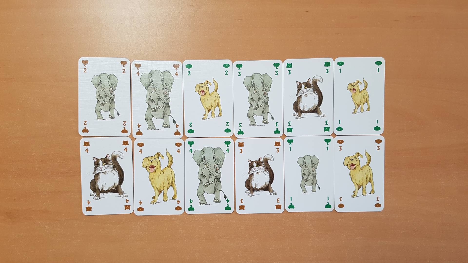 Hund, Katze, Maus ...und Elefant. Jeder versucht, den nächsten zu erwischen. Doch wer die dickste Beute macht, wird dabei oft selbst gefangen. Die Spieler versuchen daher, die Tiere zu sich hin zu treiben, indem sie Karten mit Tieren ausspielen, die andere Tiere verjagen können: Hund verjagt Katze, Katze verjagt Maus, Maus verjagt Elefant, Elefant verjagt Hund. Wenn klar ist, welchen Spielern die verjagten Tiere zulaufen, nehmen die Spieler die gewonnenen Karten an sich und legen sie verdeckt vor sich ab. Danach beginnt die nächste Runde. Sind alle Karten abgespielt, endet das Spiel, und es gewinnt der Spieler mit den wertvollsten Tieren.