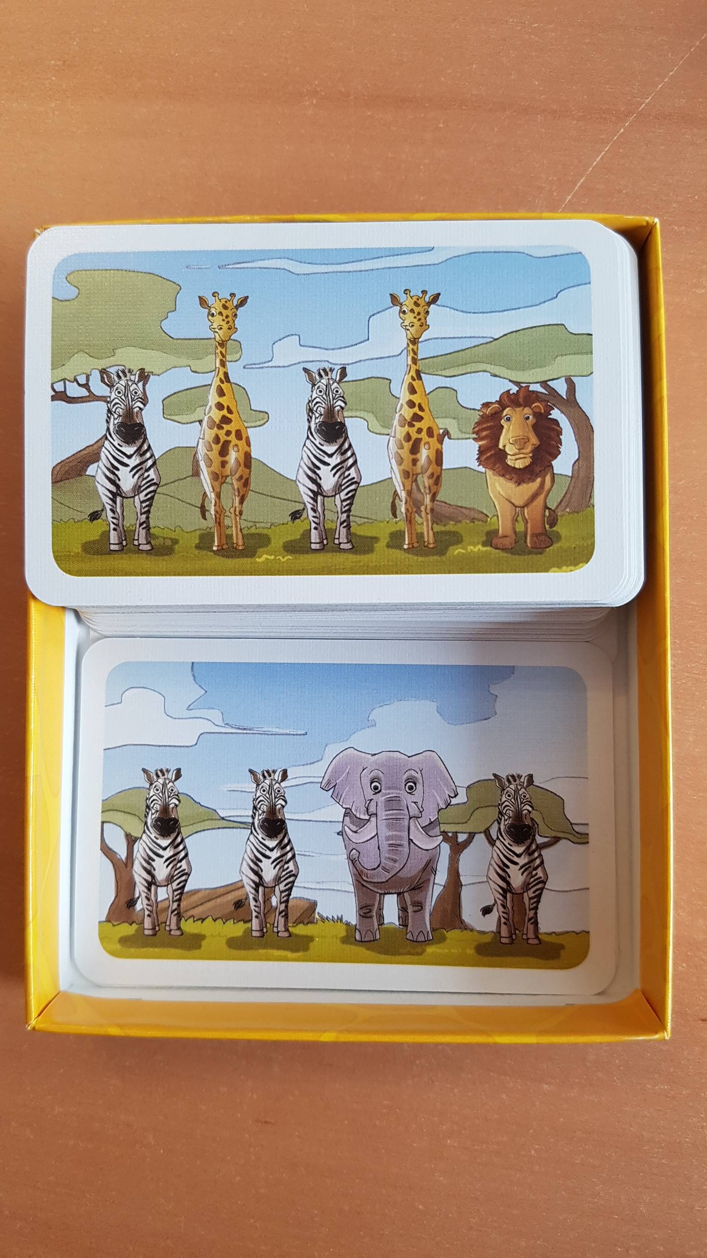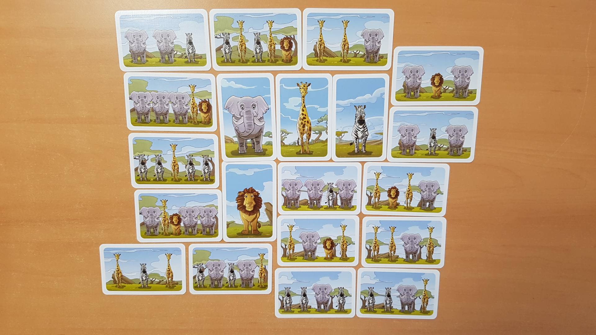Die Spieler versuchen auf ihrer Safari tolle Fotos von Tieren in freier Wildbahn zu machen. Dabei wird es immer schwieriger, je mehr Tiere auf dem Foto sein sollen. Nur wer genau hinsieht und die Tiere clever vertauscht wird als Erster alle Fotos im Kasten haben.
