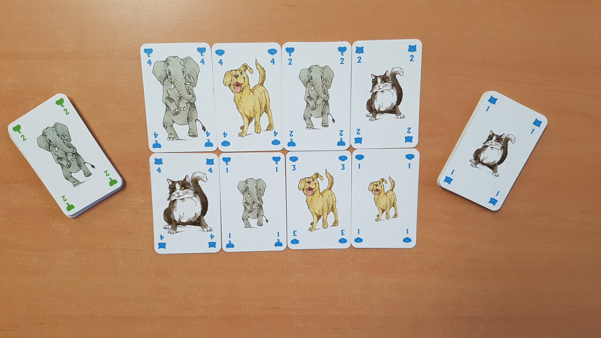 Hund, Katze, Maus ...und Elefant. Jeder versucht, den nächsten zu erwischen. Doch wer die dickste Beute macht, wird dabei oft selbst gefangen. Die Spieler versuchen daher, die Tiere zu sich hin zu treiben, indem sie Karten mit Tieren ausspielen, die andere Tiere verjagen können: Hund verjagt Katze, Katze verjagt Maus, Maus verjagt Elefant, Elefant verjagt Hund. Wenn klar ist, welchen Spielern die verjagten Tiere zulaufen, nehmen die Spieler die gewonnenen Karten an sich und legen sie verdeckt vor sich ab. Danach beginnt die nächste Runde. Sind alle Karten abgespielt, endet das Spiel, und es gewinnt der Spieler mit den wertvollsten Tieren.