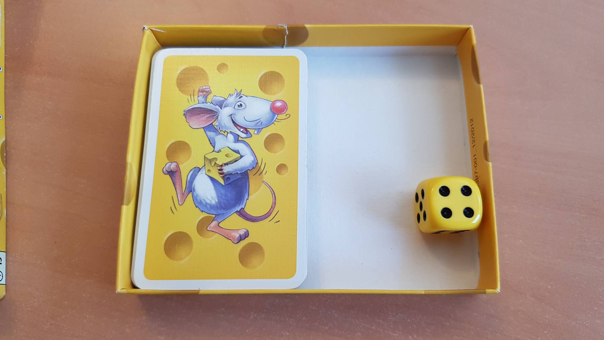 Die Mäuse sind los! Und was wollen Mäuse? Richtig, Käse! Und davon gibt es reichlich. In der Tischmitte liegt eine Auslage von 6 verdeckten Karten. Auf deren Rückseite sind Werte zwischen 1 und 6 abgebildet, auf der Vorderseite entweder Käse oder eine Mausefalle. Je höher der Wert auf der Rückseite der Karte, desto höher die Wahrscheinlichkeit in eine Falle zu tappen, aber desto mehr Punkte zählt sie bei Spielende, wenn es eine Karte mit Käse ist. Wer an der Reihe ist würfelt. Ist der gewürfelte Zahlenwert nicht in der Auslage zu finden, darf er geheim unter eine beliebige der Karten schauen und legt sie wieder zurück. Würfelt der Spieler einen Zahlenwert, der in der Auslage zu finden ist, kann er diese Karte aufdecken und vor sich ablegen oder er entscheidet sich sie ungesehen auf den Ablagestapel zu legen. Das Spiel endet, wenn ein Spieler seine 3. Mausefalle aufdeckt – er hat auf jeden Fall verloren. Alle anderen Spieler zählen die Punkte ihrer Käsekarten zusammen. Wer die meisten Punkte hat, gewinnt.