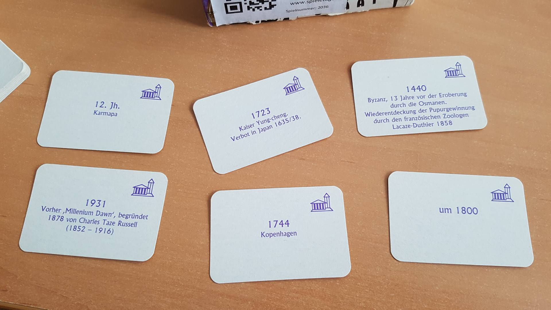 Der nachfolgende Spieler kann die zeitliche Abfolge anzweifeln oder nicht. Wenn angezweifelt wird, werden die Karten umgedreht. Nun sind die Jahreszahlen sichtbar, liegt ein Fehler in der Zeitreihenfolge vor, so erhält der Spieler, der die letzte Karte gelegt hat, zusätzliche Karten. Waren alle Ereignisse zeitlich richtig eingeordnet, bekommt der Zweifler zusätzliche Karten.