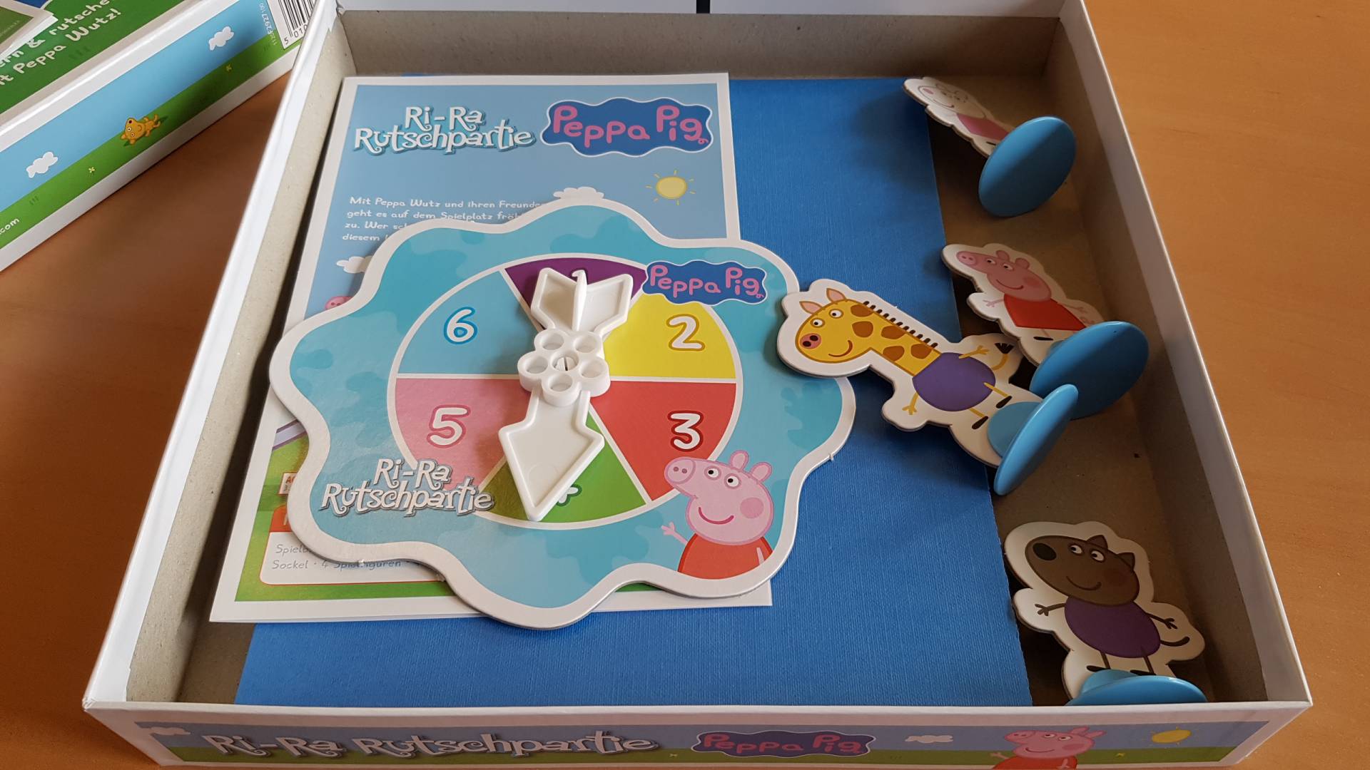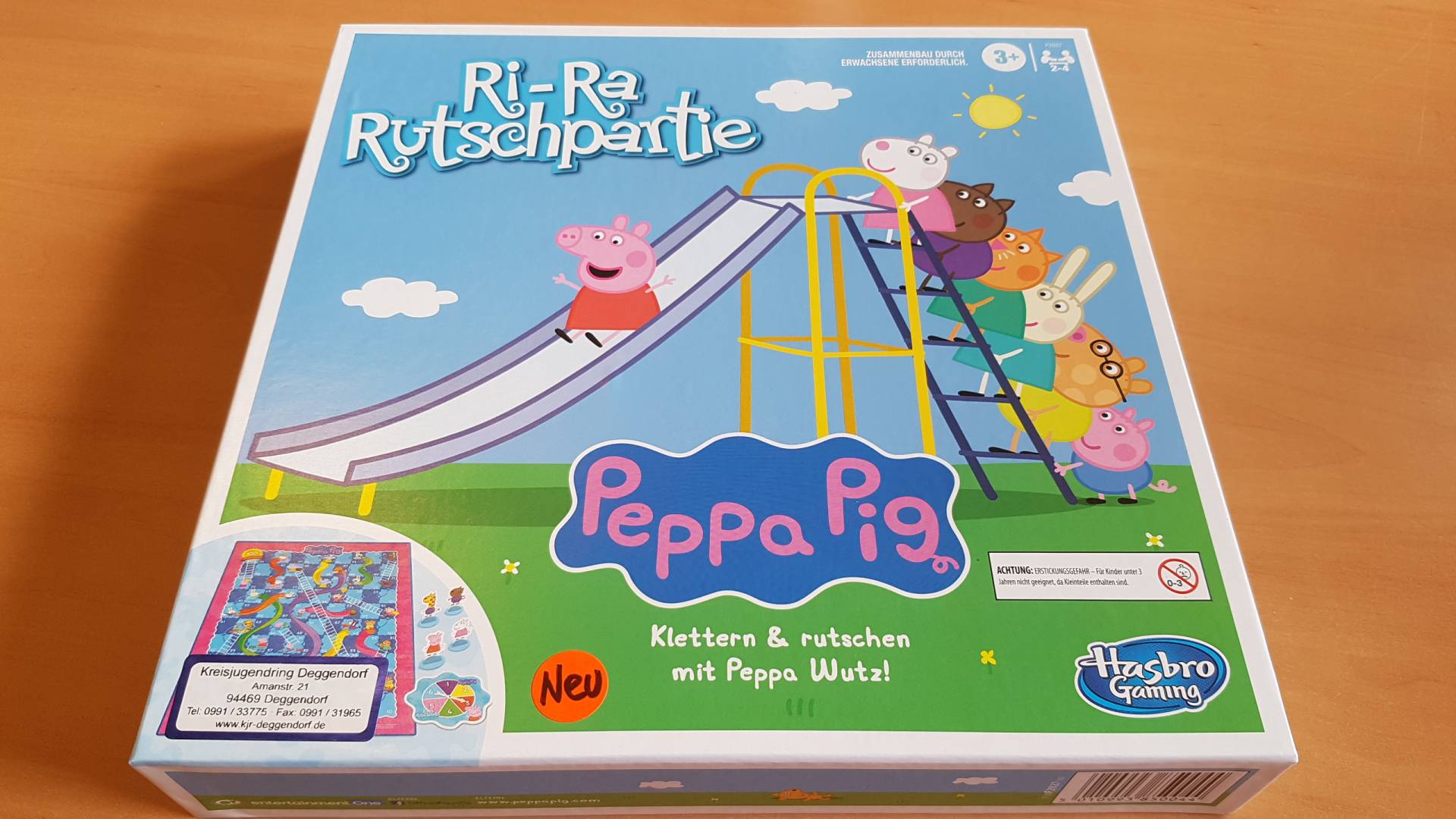 Rutsche runter, Leiter rauf – mit den niedlichen Figuren aus der beliebten Serie Peppa Wutz. Bei „Ri-Ra Rutschpartie Peppa Wutz“ verbringen die Kinder eine fröhliche Zeit mit Peppa und ihren Freunden auf dem Spielplatz. Mit 4 niedlichen Spielfiguren – Peppa Wutz, Gerald Giraffe, Luzie Locke und Klausi Kläff – kann der Spaß beginnen. Die Spieler drehen die Scheibe und ziehen entlang der Zahlenfelder auf dem Spielbrett umher. Wer erreicht zuerst das Feld mit der Zahl 100? Leitern helfen den Spielern dabei, durch Klettern schneller ans Ziel zu kommen, doch mit den Rutschen können sie wieder hinunterflutschen und der Sieg ist weiter entfernt. Bei diesem unterhaltsamen Spiel sind keine Lesekenntnisse erforderlich und es bietet Vorschulkindern eine tolle Möglichkeit, um spielerisch erste Erfahrungen mit Zahlen zu machen.