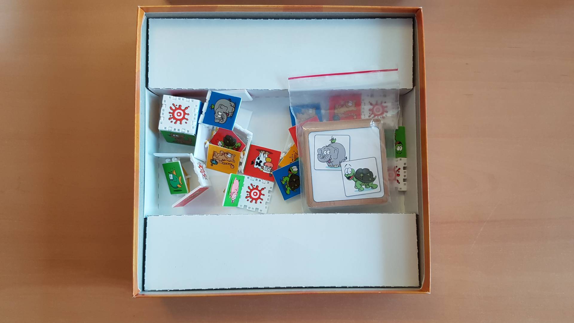 Dementsprechend munter geht es zu, wenn die ganze Kinderrunde gleichzeitig auf die Würfel drückt, bis einer die gerade gesuchte Bilderkombination auf den Würfelseiten entdeckt.