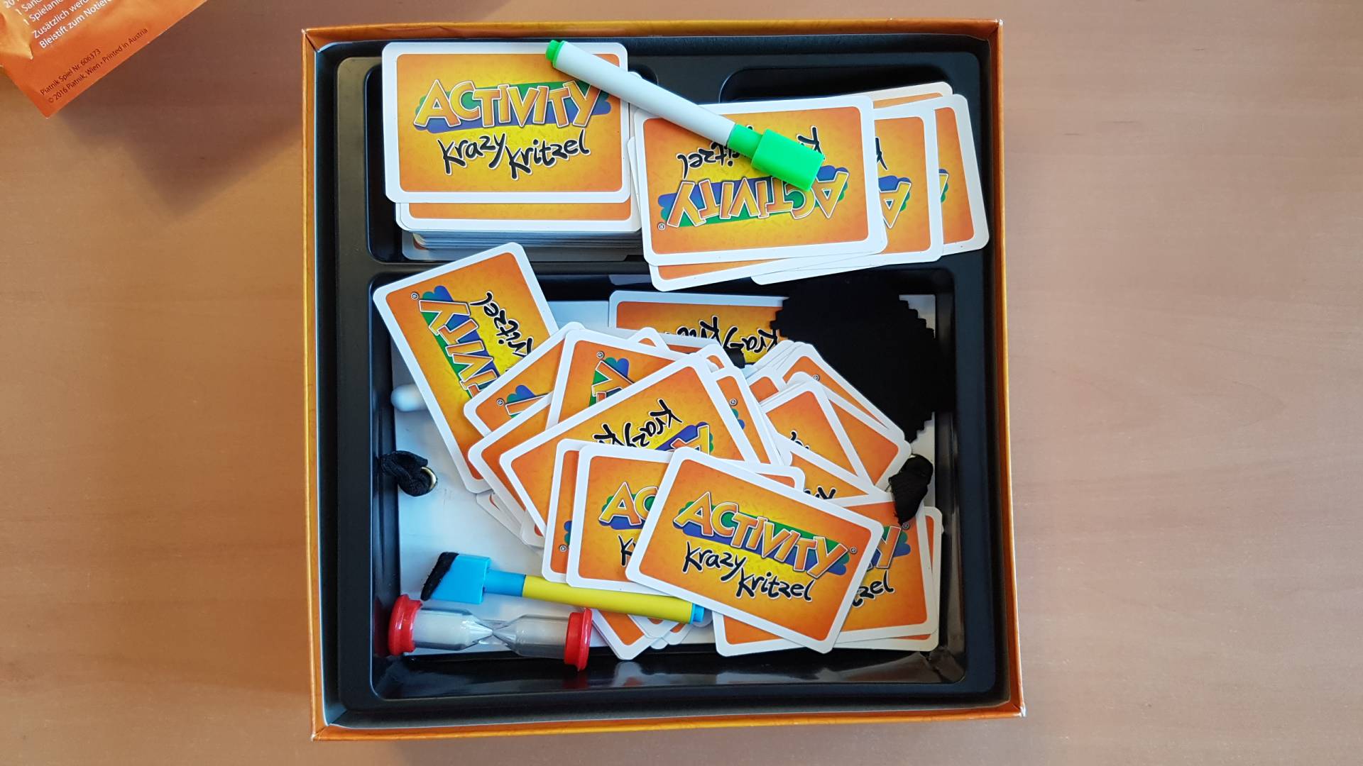1000 Begriffe, eine kleine Tafel mit Gummiband, ein abwaschbarer Stift und die Zeit läuft: Umdenken ist bei der neusten Variante des beliebten Partyspiels gefragt! Activity Krazy Kritzel bietet selbst eingefleischten Activity-Profis eine neue Herausforderung. Blind und spiegelverkehrt auf einem Zeichenbrett, das vor die Stirn geschnallt wird, müssen Begriffe Gestalt annehmen. Gekritzel oder Kunst? Hauptsache erkennbar!