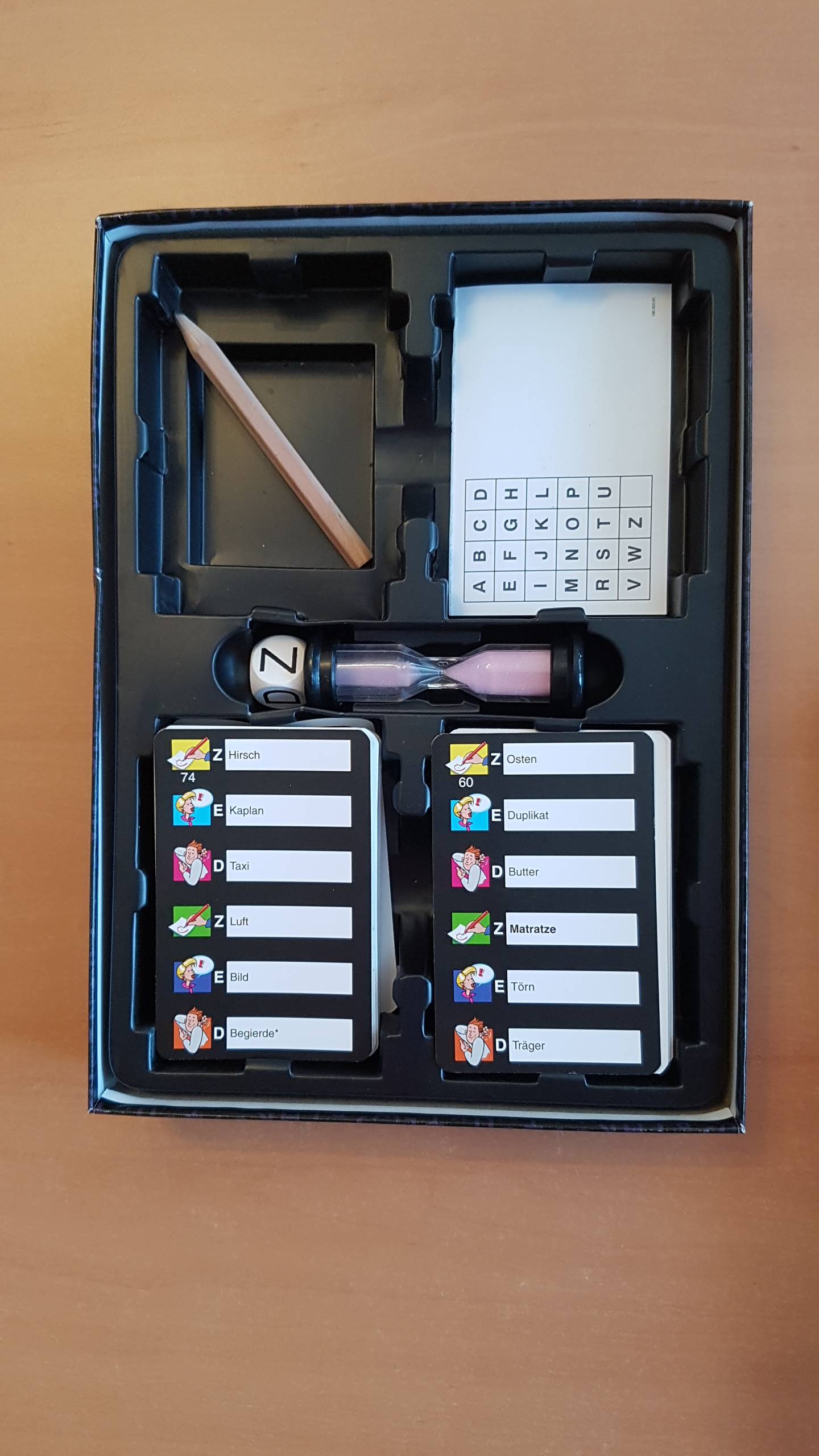 Diese neue Activity-Reiseversion ohne Spielplan im praktischen etui ist handlich und leicht überhallhin mitzunehmen DieDarstellungsart wird duch Würfeln bestimmt. Die einzelnen Mannschaften versuchen, durch geschicktes Darstellen, Umschreiben und Zeichnen verschiedener Begriffe die einzelnen Buchstaben des Codewortes der gegnerischen Mannschaft zu erraten. Das Team das das Codewort zuerst findet gewinnt..