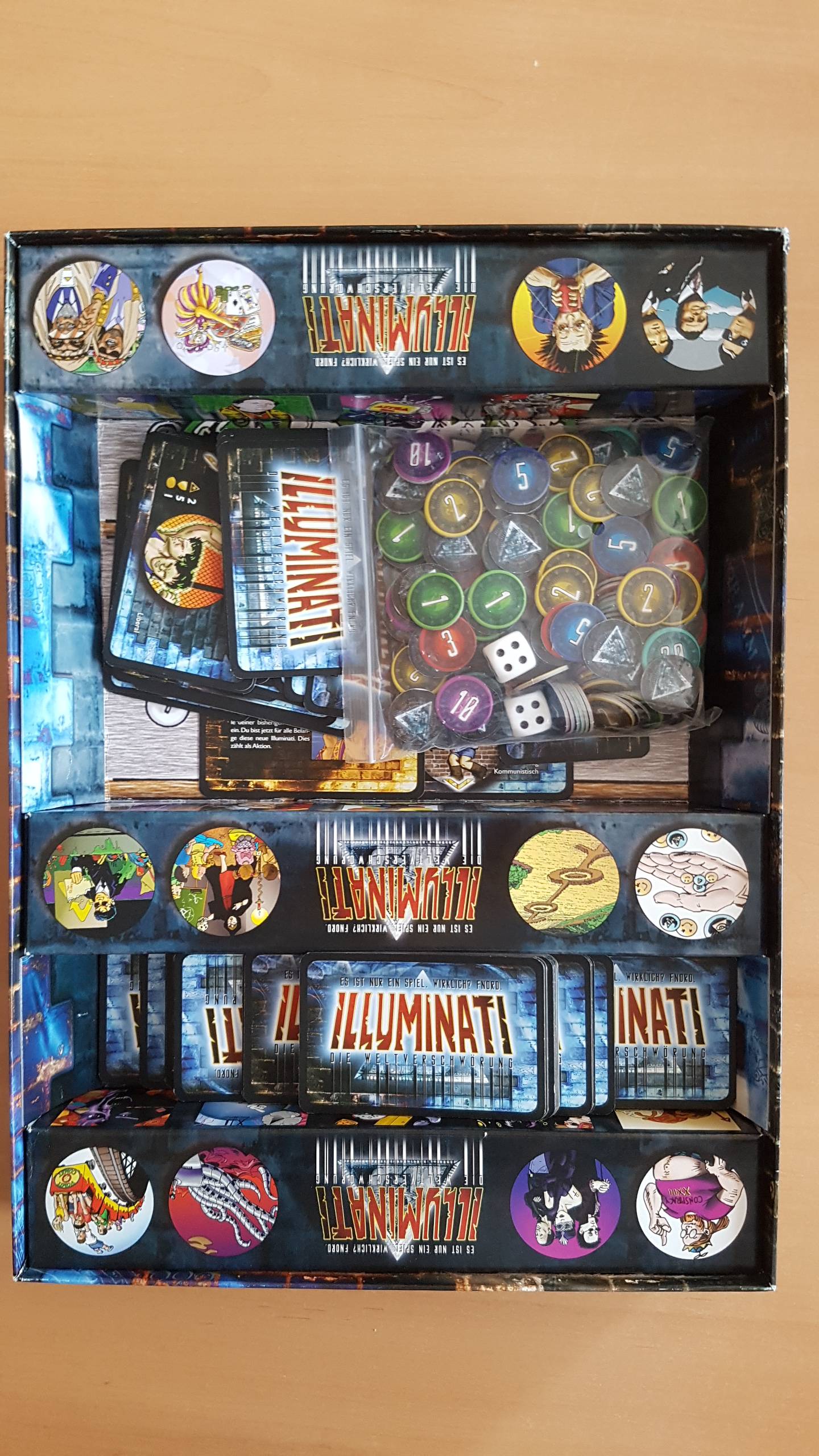 In diesem leicht zu lernenden Spiel versuchen 2-6 Spieler, Gruppen verschiedenster Art zu übernehmen und ihre Macht zu vermehren. Die Mafia kontrolliert das Pentagon und die Wall Street, während die Atomkraftwerke mit Hilfe der Europäischen Zentralbank die Christdemokraten übernehmen - bei Illuminati nichts Ungewöhnliches, denn auf deinem Weg zum Sieg ist kein Plan zu hinterhältig und kein Bündnis zu abwegig. Also lass mal so richtig die Puppen tanzen!