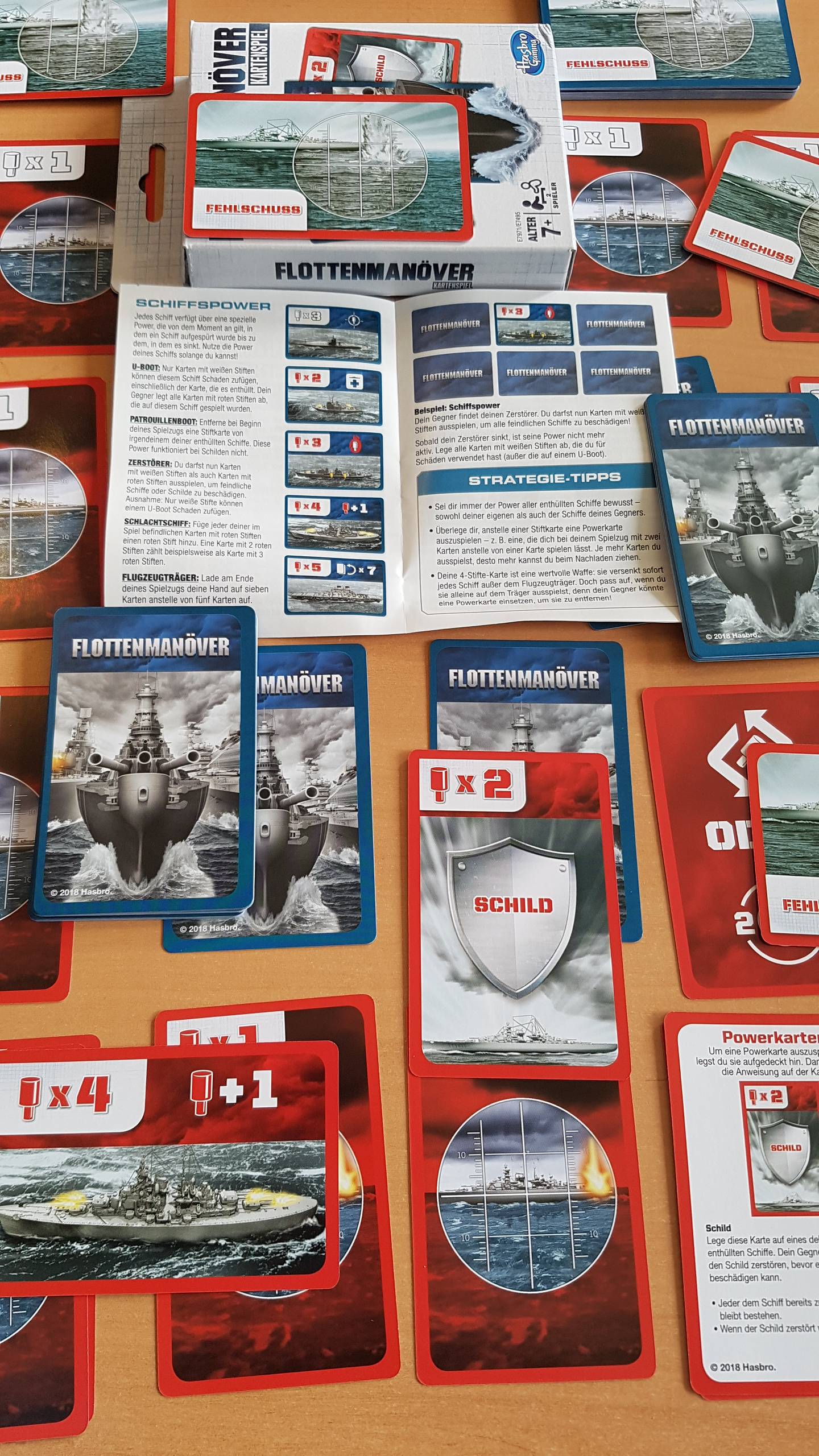 Zielen, treffen, versenken! Das beliebte Strategiespiel von Hasbro gibt es jetzt auch als spannendes Kartenspiel für unterwegs. In dieser Version von Flottenmanöver legen die Spieler ihre Koordinaten-Karten vor sich und wählen Battle-Karten von ihrer Hand aus, um entweder eine Stiftkarte oder eine Powerkarte auszuspielen. Wenn es darum geht, gegnerische Schiffe aufzuspüren, zu treffen und zu versenken, ist strategisches Denken angesagt. Kleinere Admiräle haben mit den Spielregeln für Anfänger großen Spaß, während fortgeschrittene Spieler die Powerkarten einsetzen, um das Manöver für sich zu entscheiden. Der erste Spieler, der alle 5 Schiffe der gegnerischen Flotte versenkt, gewinnt!