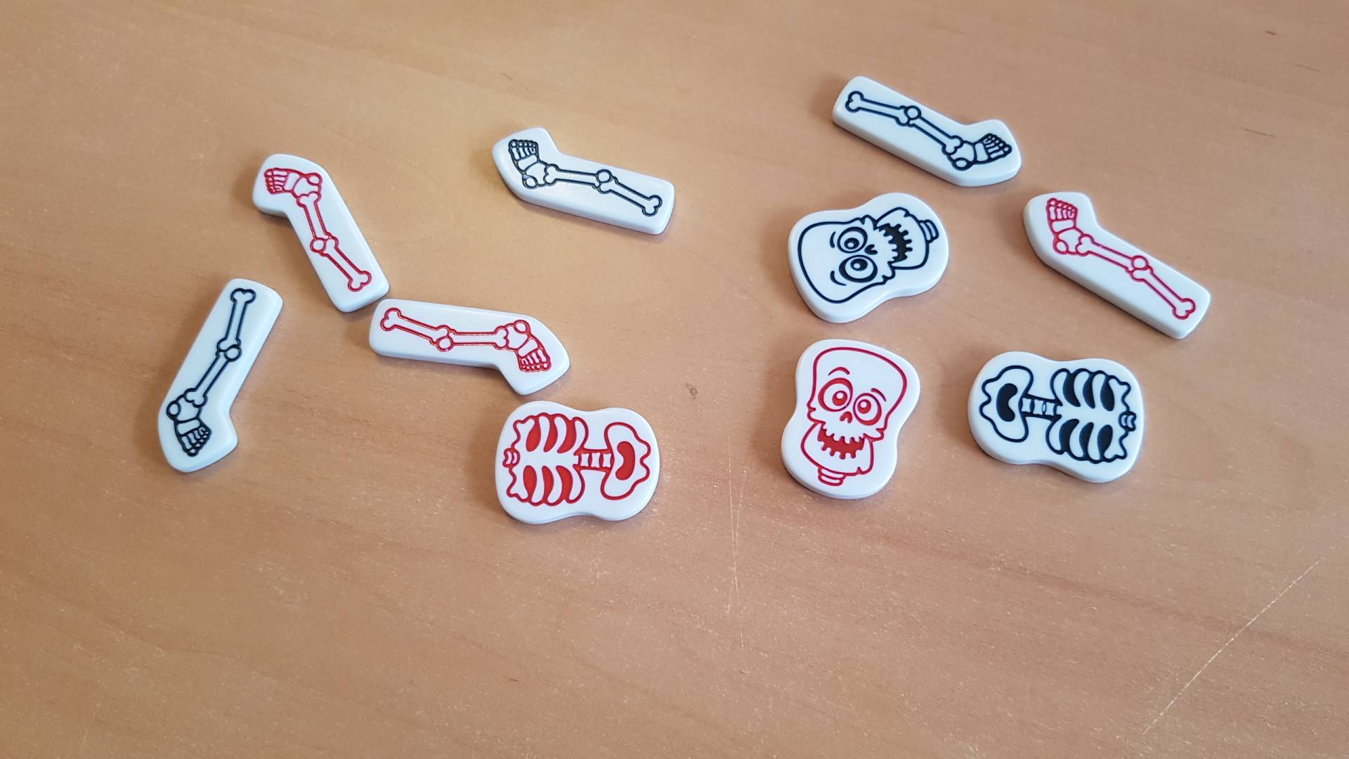 Es kann sein, dass beide Mitspieler ein Skelett gleicher Farbe legen müssen. Nun werfen die Spieler abwechselnd ihre Knochenwürfel und versuchen, das Skelett in ihrer Farbe zu komplettieren.